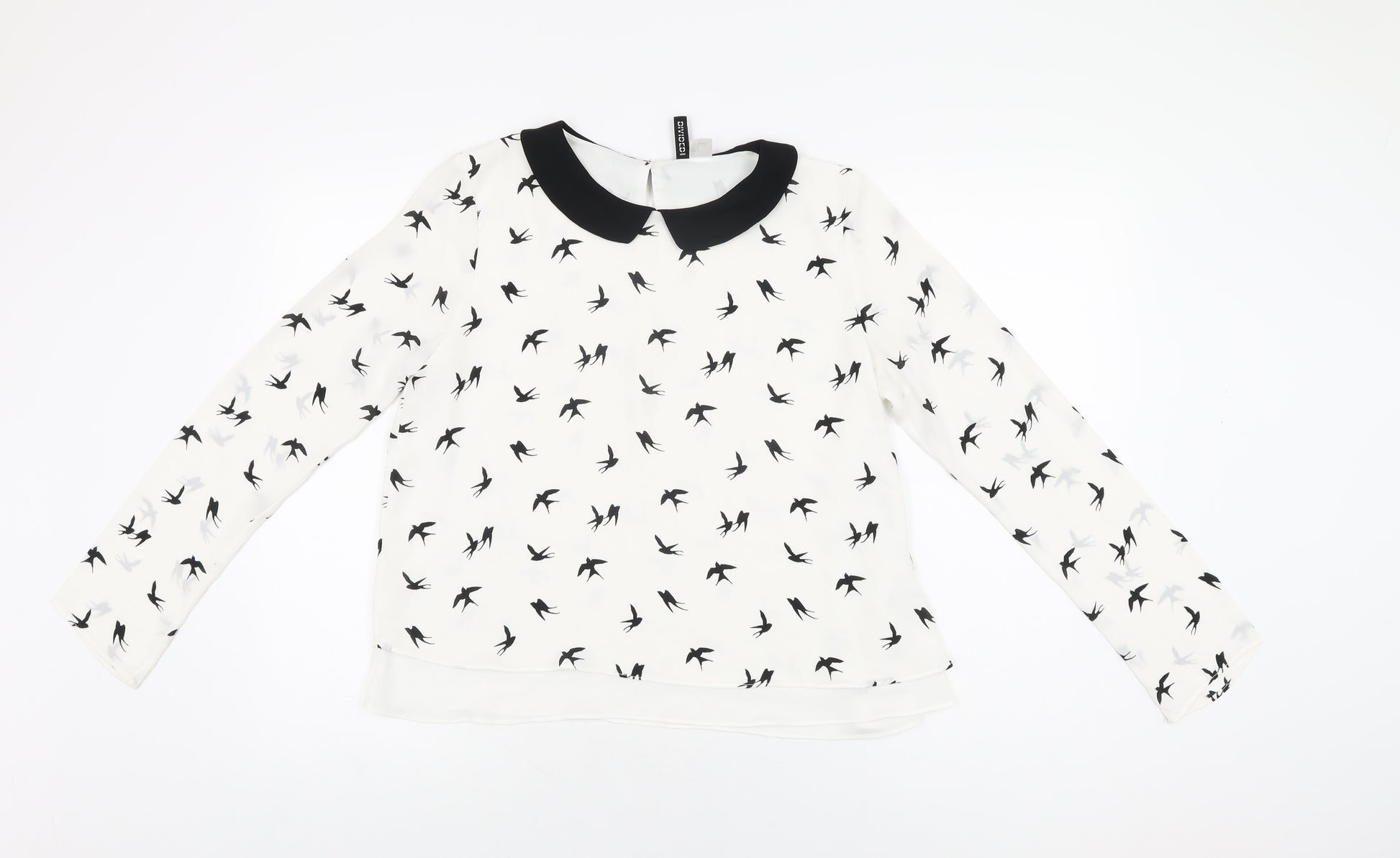 Womens White Geometric Polyester Basic Blouse Size 10 Collared - Bird Print