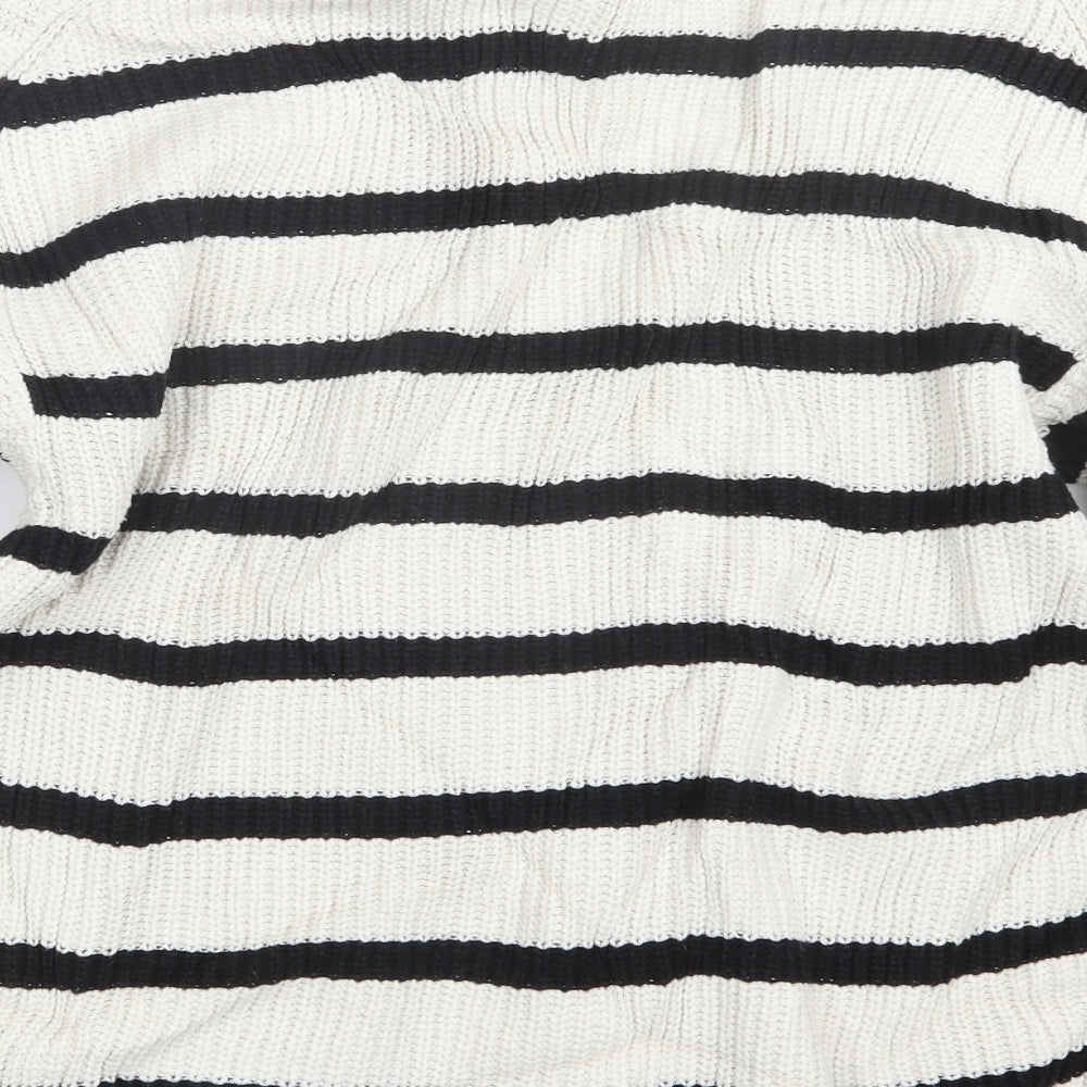 Womens White Striped Knit Pullover Jumper Size XS