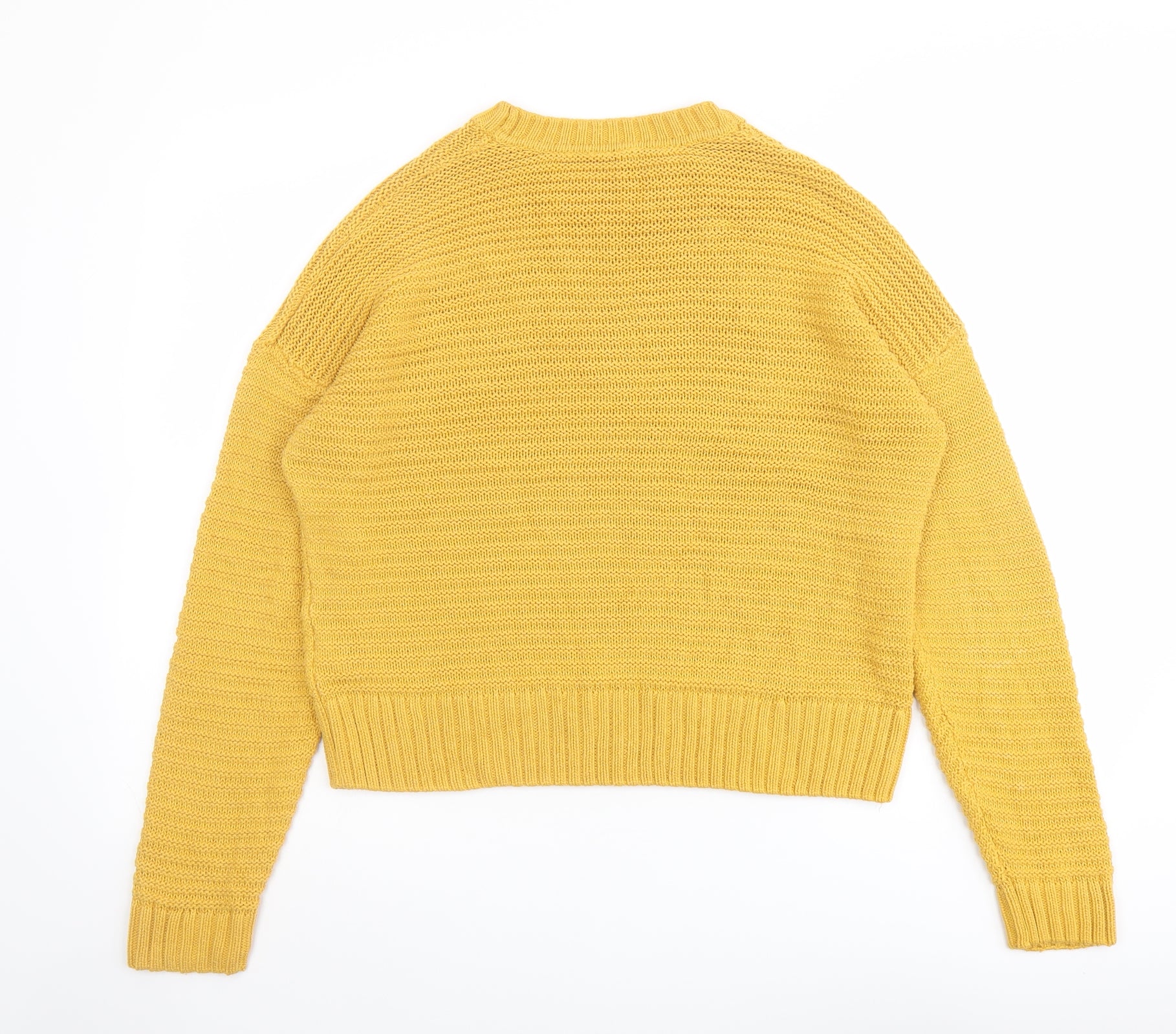 Womens Yellow Round Neck Acrylic Pullover Jumper Size S