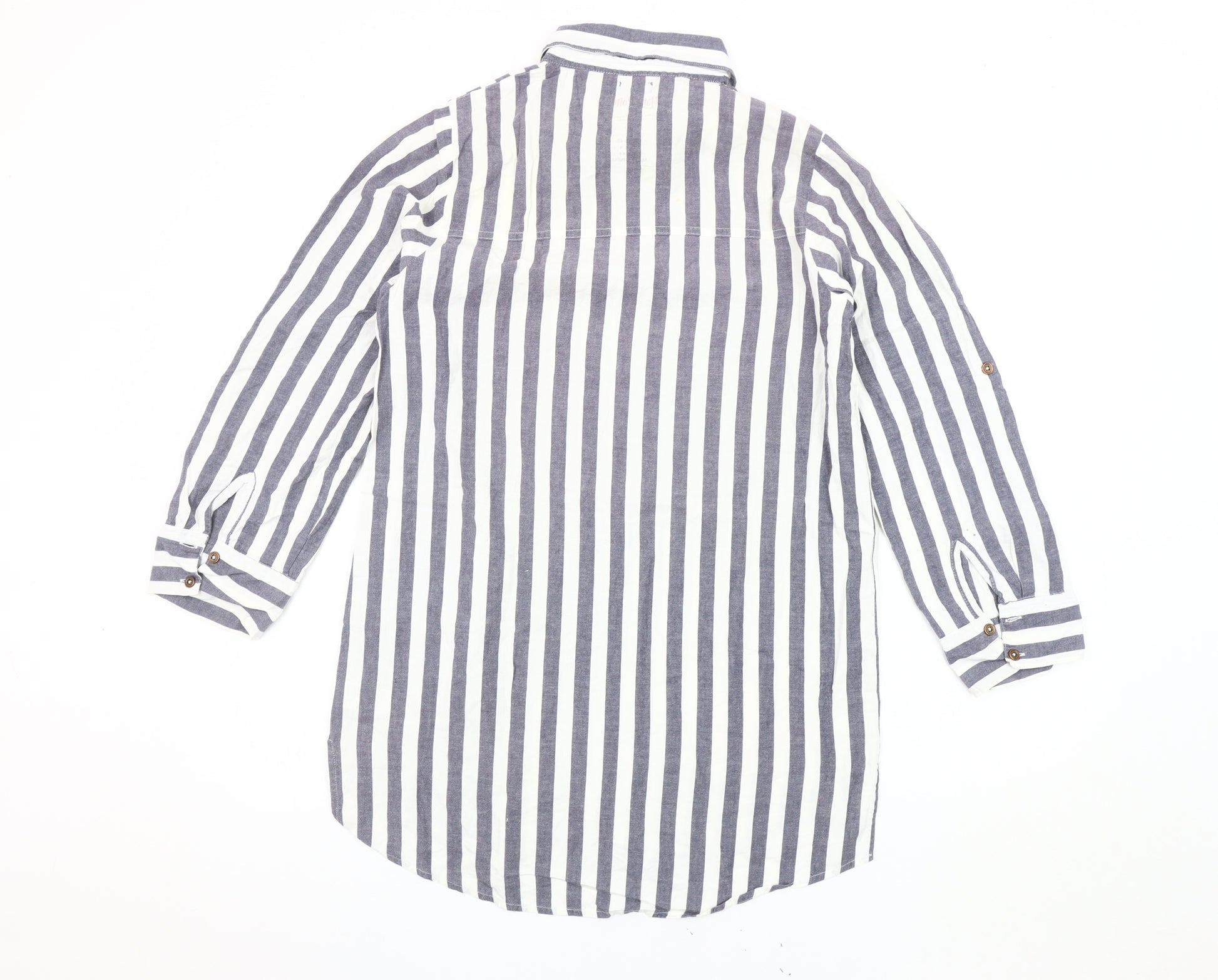 Embrace the magic of Hogwarts with this stunning H. Potter Women's Grey Striped Nightshirt, ideal for any Harry Potter fan. Crafted from soft 100% cotton, this nightshirt promises a comfortable night's sleep while expressing your love for the wizarding world. Featuring the classic Harry Potter character theme, this nightshirt brings together style and comfort in a way few others can.The eye-catching grey and white striped pattern offers a timeless appeal, complemented perfectly by the collared neckline and long sleeves. The classic button-up closure adds a touch of sophistication, making it a versatile choice for both lounging at home and enjoying relaxing evenings. Sized perfectly for women, this regular size 10-12 nightshirt can be an exciting addition to your nightwear collection.This nightshirt, although gently used, is in excellent condition and ready to transport you to the magical halls of Hogwarts. Machine washable for easy care, it ensures you stay comfortable without any fuss. Relive the adventures of Harry Potter every night by slipping into this enchanting sleepwear.Whether you are a Hogwarts student at heart or someone who cherishes cosy nights, this H. Potter nightshirt ticks all the right boxes. Grab this unique piece today and add a spellbinding touch to your nightwear rotation. Perfect for gifting to a fellow fan or treating yourself, it's the ultimate attire for chilly nights and magical dreams!
