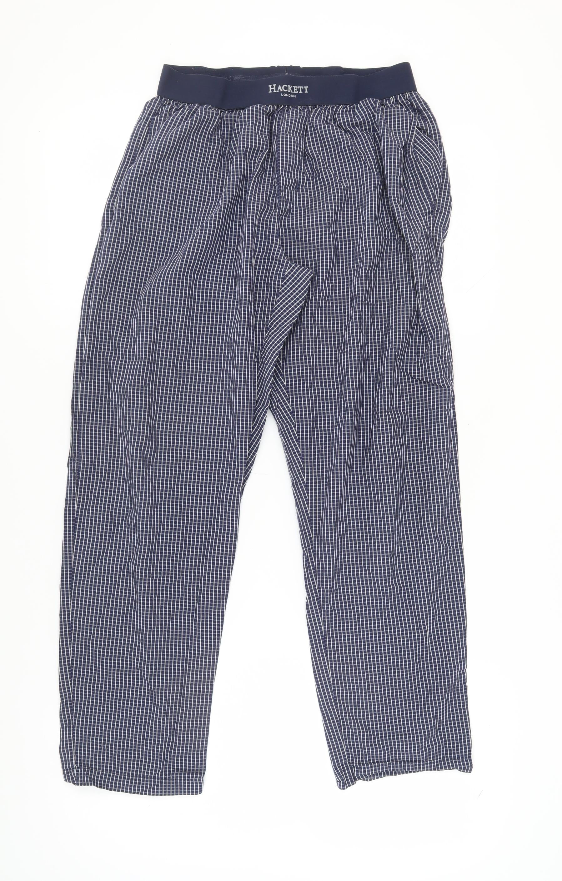 Elevate your comfort with these Hackett lounge pants, designed for relaxation and style. Crafted from 100% cotton, they offer a soft touch against your skin, making them perfect for chilly autumn and winter nights. The medium size ensures a regular fit for men's dimensions, while the blue check pattern adds a timeless charm to your nightwear collection. The adjustable drawstring feature provides a customised fit, catering to your comfort needs. Although displaying minimal signs of previous wear, these pants remain in excellent condition, offering a combination of enduring style and durability. With these premium lounge pants, you can enjoy a cosy evening at home in a fashion-forward manner.