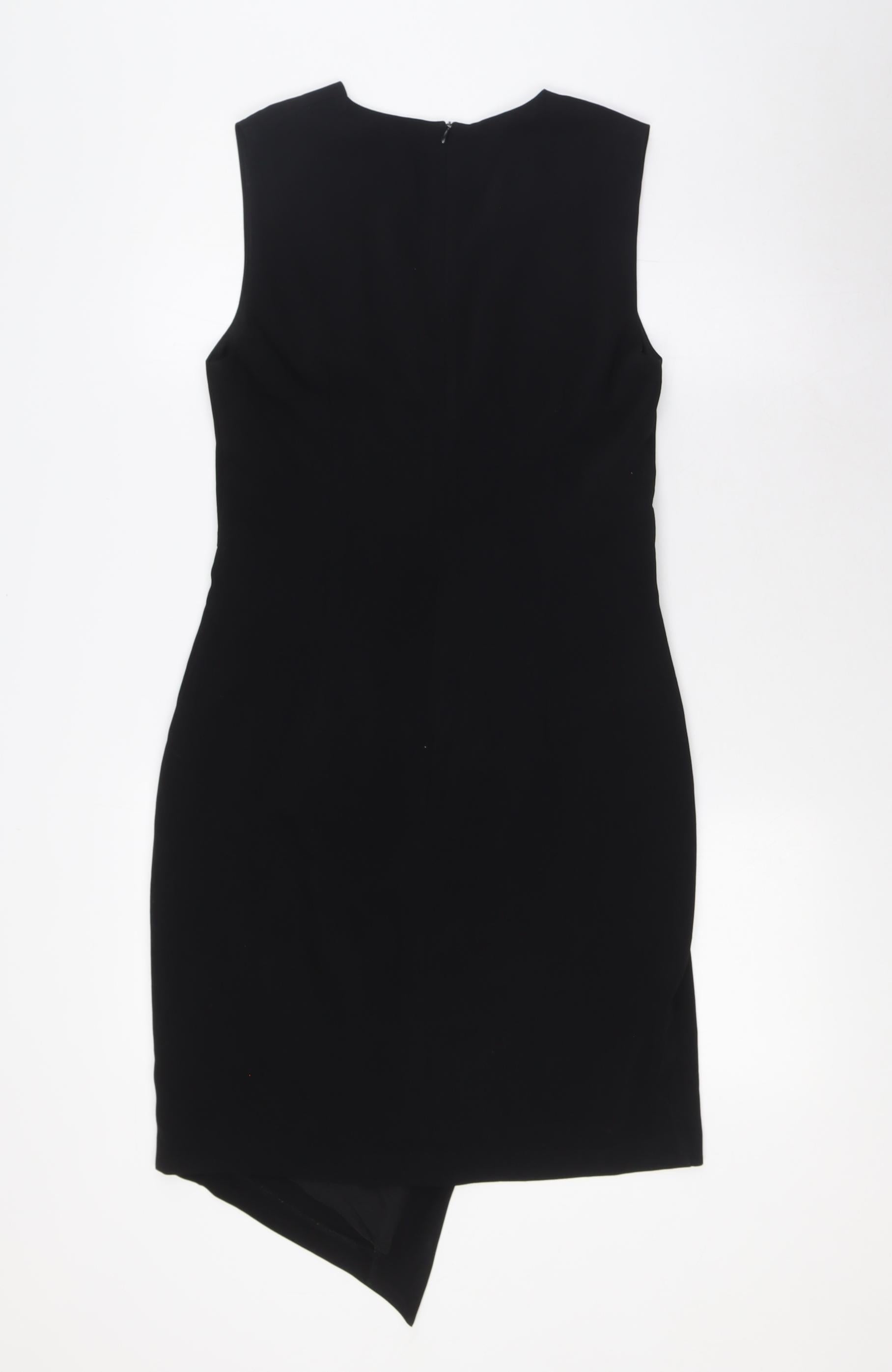 Womens Black Polyester Wrap Dress Size L V-Neck Zip