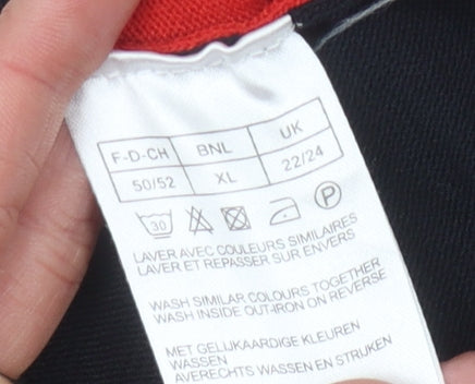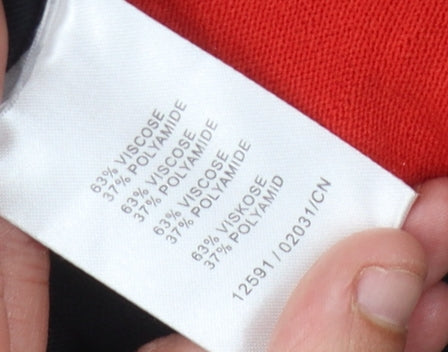 Elevate your wardrobe with this striking Happy D. by Damart Women's Pullover Jumper. Designed in an eye-catching geometric pattern, this black pullover features contrasting red and white color blocks that add a touch of modern flair to any outfit. Crafted from a comfortable and breathable viscose and polyamide blend, this jumper offers a regular fit that is perfect for casual occasions. Its round neckline and long sleeves provide warmth and style during colder days. Easily machine washable, it is both convenient and stylish, making it a must-have staple for any fashion-forward woman's collection. In excellent condition, with no signs of damage, this gently worn piece is available at a fantastic price. Don’t miss out on this classic jumper that seamlessly combines style with comfort.