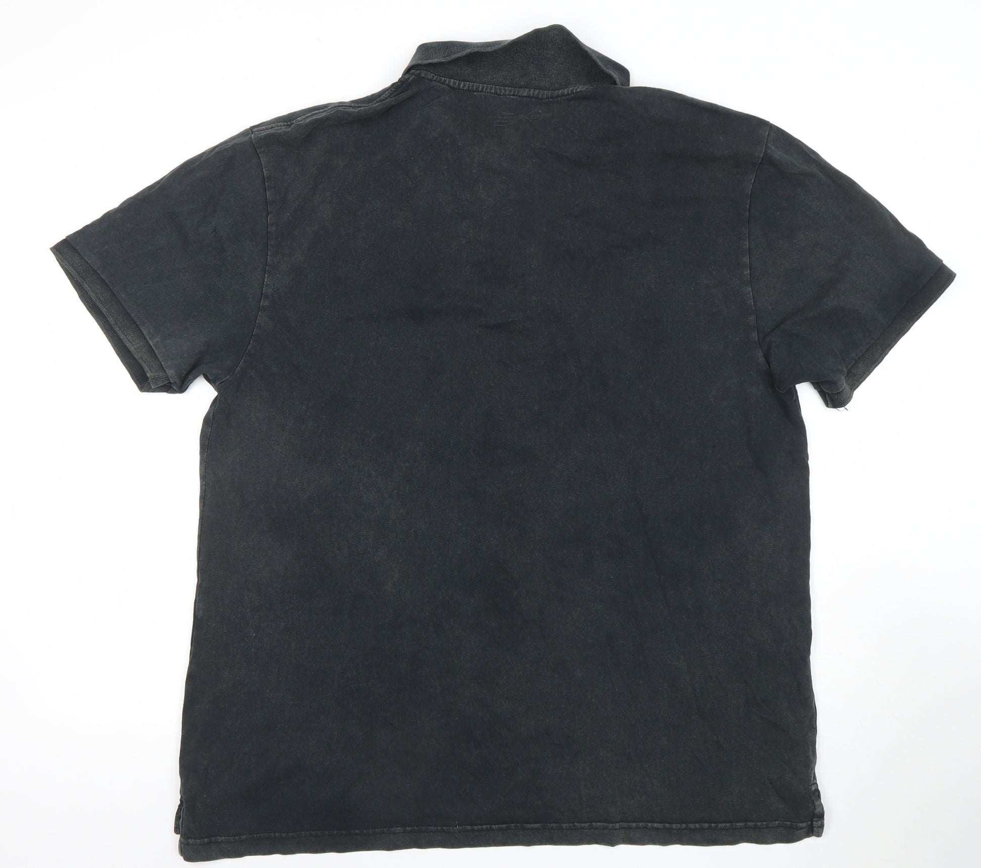 This Hard Rock Cafe men’s polo shirt in size XL is a bold and iconic piece perfect for fans of classic rock style. Crafted from 100% soft cotton, the shirt offers a comfortable and breathable wear ideal for any casual occasion. Its washed black tone gives a vintage-inspired look, enhanced by the striking front print featuring electric guitar and Hard Rock Cafe Tenerife logo detailing. This polo embodies effortless cool with its timeless collared neckline, short sleeves, and button placket. The acid wash finish and quality jersey fabric provide a soft yet durable texture that stands the test of time. Whether worn on warm summer days, layered under a jacket, or styled for travel adventures, this piece brings versatility and character. The subtle faded effect across the fabric adds an authentic, lived-in charm while the embroidered and printed accents proudly display the Hard Rock Cafe spirit known globally. Ideal for men who appreciate comfortable everyday wear with personality, this polo offers a regular fit for relaxed styling. It pairs easily with jeans, chinos, or shorts for an effortlessly cool and casual outfit. Machine washable for easy care, this tee is perfect for those who value both comfort and individuality. Overall, a fantastic addition for collectors or anyone wanting a durable, stylish polo that celebrates the timeless music culture of Hard Rock Cafe. Gently worn with minor fading consistent with age, it remains in very good condition. A great find for lovers of classic branded apparel with a rock-inspired edge.