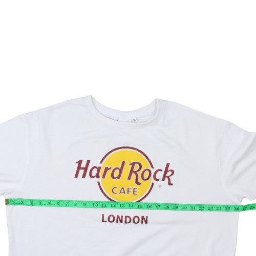 Celebrate timeless style and global culture with this Hard Rock Cafe Women's White Pullover Sweatshirt featuring the iconic London logo. Crafted from a comfortable cotton and polyester blend, this sweatshirt combines quality materials with a casual, relaxed design suitable for everyday wear. The crisp white colour creates a clean backdrop for the bold yellow, red and brown Hard Rock Cafe logo at the chest, instantly recognisable and full of personality. Perfect for music lovers and travel enthusiasts alike, this sweatshirt captures the spirit of one of the world's most famous brands.Designed in a classic crew neck style with long sleeves and ribbed cuffs, this pullover offers both durability and comfort. The soft fleece interior ensures warmth on cooler days, while the relaxed fit provides easy layering for all seasons. Whether you’re heading out for a casual day in town, relaxing at home, or adding a retro-inspired piece to your wardrobe, this Hard Rock Cafe sweatshirt delivers versatile appeal.The front logo accent gives it a distinctive character, embodying the joy of music and adventure that Hard Rock Cafe is known for. The cotton-rich fabric ensures breathability, while polyester adds structure and resistance to wear. This sweatshirt is machine washable for easy care, making it a practical addition to your casualwear collection. Pair it with jeans or joggers for a laid-back yet stylish look.Ideal for casual outings, concerts or travel, this piece represents effortless fashion with cultural edge. Its classic design and iconic branding make it equally perfect as a souvenir or wardrobe staple. Offered in excellent condition with minimal signs of wear, it retains its original shape and brightness. A must-own for any Hard Rock Cafe fan or collector.