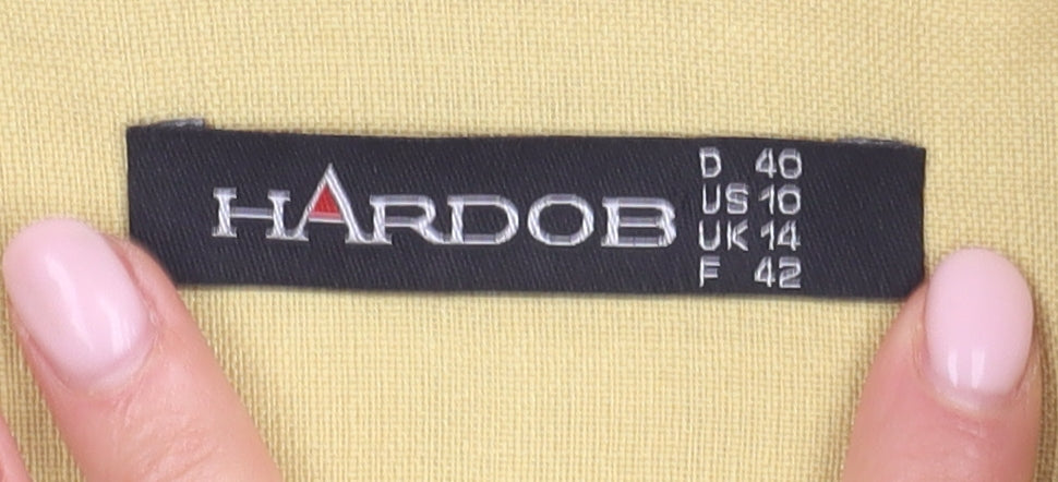 Step up your style game with this elegant Hardob yellow blazer, perfect for both business and casual occasions. Made from a blend of polyester and wool, this blazer offers comfort and durability, making it a versatile addition to your wardrobe. The mid-length design and classic double-breasted button closure add a touch of sophistication, while the acetate lining ensures a smooth and comfortable fit. Ideal for the autumn and spring seasons, this basic jacket style blazer features long sleeves and a clean, no-pattern look, making it easy to mix and match with various outfits. The regular fit and size 14 make it an excellent choice for women seeking a timeless piece that seamlessly blends function with fashion. Whether you're heading to the office or a casual outing, this blazer, with its traditional collared design and button accents, is sure to make a statement. Embrace classic elegance and enhance your wardrobe with this must-have piece.