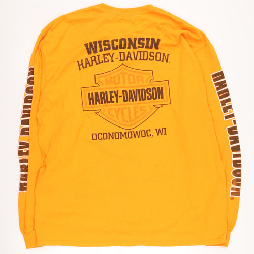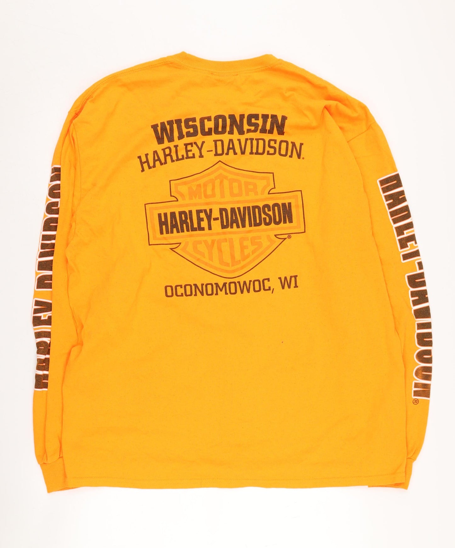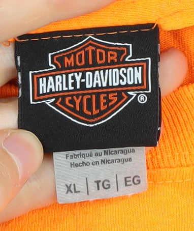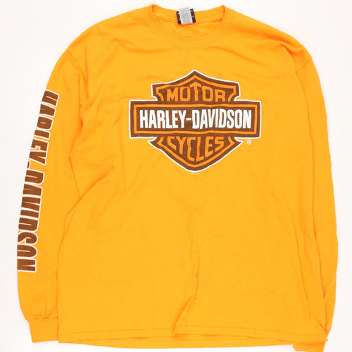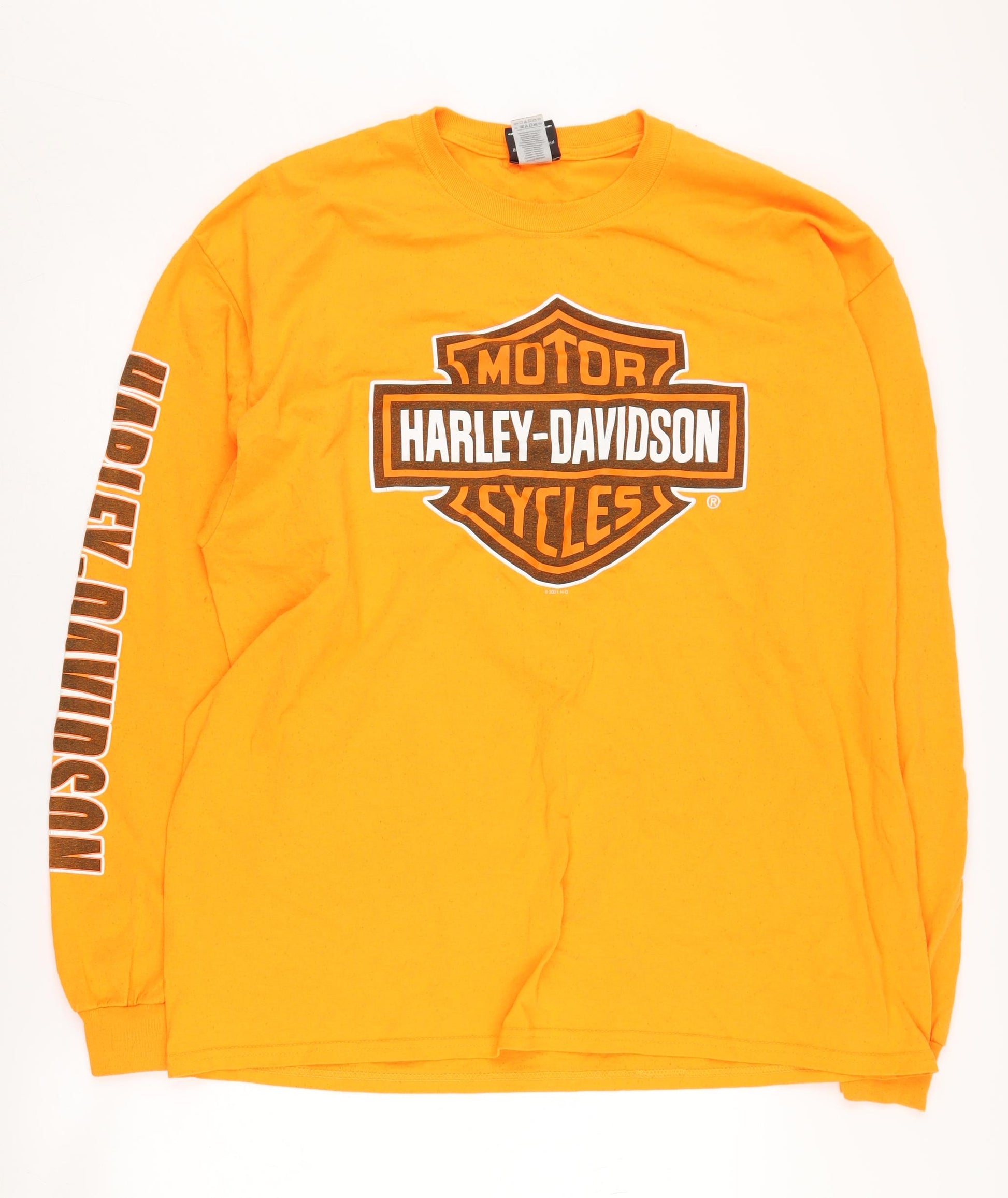 Express your love for the open road with this vibrant Harley-Davidson sweatshirt, designed for the motorcycle enthusiast. In a striking orange hue, this pullover sweatshirt features the iconic Harley-Davidson logo, a bold graphic print that promises to turn heads wherever you go. Expertly crafted from a durable cotton and polyester blend, it offers the perfect combination of comfort and style, making it a standout addition to any wardrobe. Ideal for casual outings or a weekend ride, this sweatshirt is sure to keep you warm while showcasing your passion for the legendary brand. Available in XL size, it's tailored for men and offers a relaxed crew neck fit, allowing for easy layering and unrestricted movement. Whether you're wearing it on a road trip or simply lounging at home, this sweatshirt brings a touch of adventure and freedom to your everyday look. Upgrade your style with this Harley-Davidson must-have – a true staple for any devoted rider.