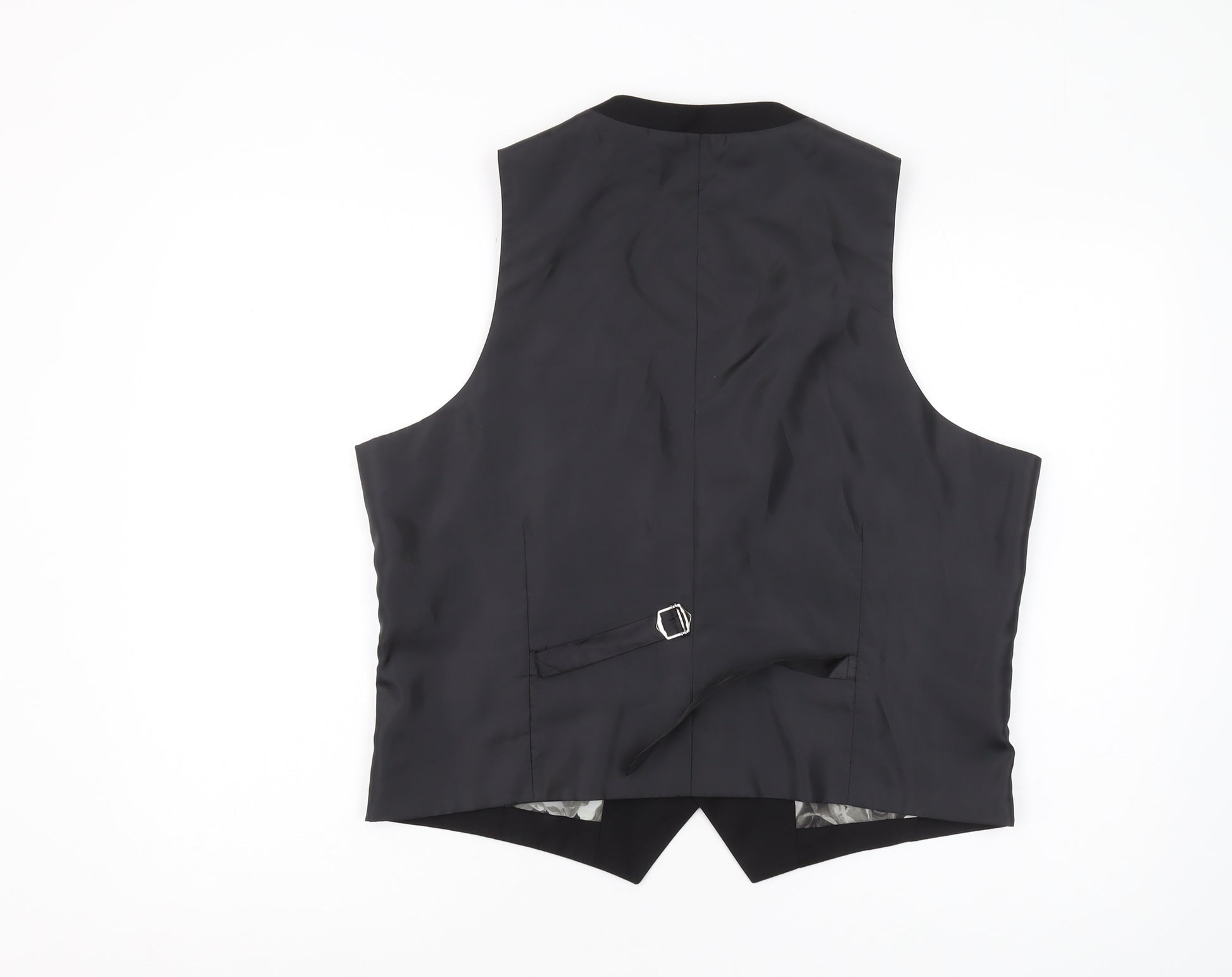 Elevate your formal attire with this stylish Harry Brown men's black slim waistcoat, perfect for those seeking a modern touch to their ensemble. Expertly tailored to meet the demands of contemporary style, this waistcoat fits size 42 in a flattering slim fit, ensuring you look sharp and sophisticated. Crafted from a durable blend of 70% polyester and 30% viscose, it offers a smooth finish and comfortable wear, ideal for any formal occasion or business event. The waistcoat features a striking floral pattern lining inside, adding a touch of elegance to its classic black exterior. Designed with practicality in mind, this waistcoat boasts inner pockets, allowing you to easily store small essentials. The five-button front provides a modern look, while its tailored structure enhances your silhouette. Despite being pre-owned, this waistcoat is in excellent condition, showing quality craftsmanship without visible defects. This Harry Brown waistcoat is perfect for weddings, parties, or business meetings, offering versatility for year-round use. With its classic style and modern fit, it's more than just a waistcoat – it's an easy upgrade to your wardrobe, promising to make you stand out on any occasion.