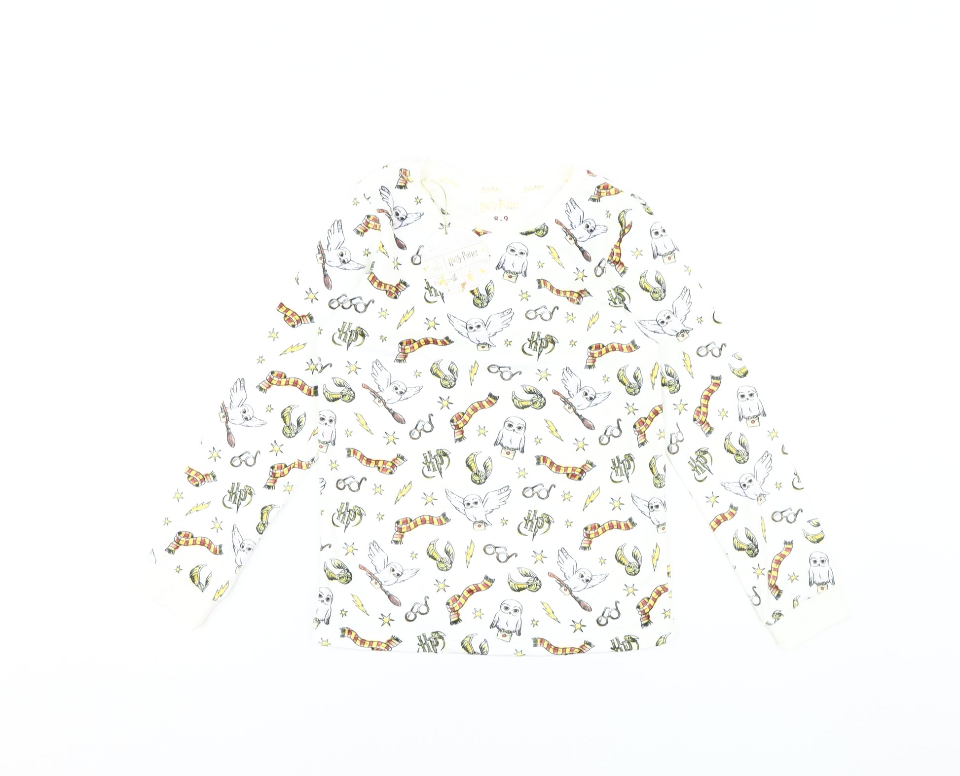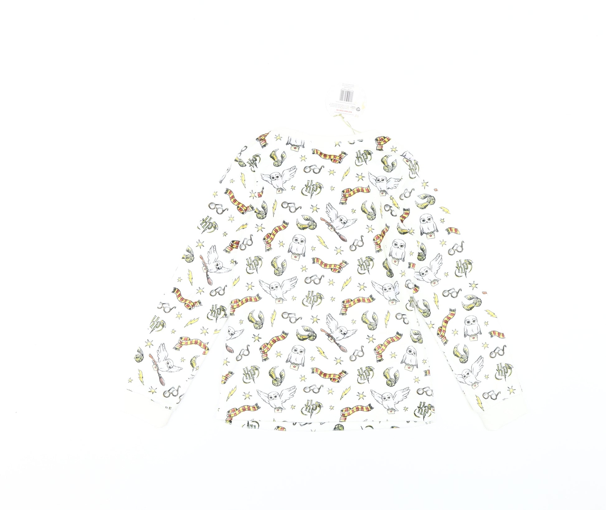 Step into the magical world of Hogwarts with this enchanting Harry Potter pyjama top, perfect for young wizards. Crafted from a comfortable blend of polyester and elastane, this lightweight top is ideal for all seasons. Its white jersey fabric is adorned with iconic Harry Potter graphics, promising your little one both comfort and style as they drift into dreamland. The crew neck and long sleeve design ensure a cosy fit throughout the night. With its magical theme, this pyjama top captures the essence of the wizarding world, making it a must-have for fans. Designed for boys aged 8-9 years, it offers a pullover closure for convenience. Additionally, it is easy to care for, being machine washable, making it practical for everyday use. Celebrate the charm of Harry Potter while providing your child a delightful sleepwear experience. Grab this new piece with original tags today and let your child embark on a magical bedtime adventure.