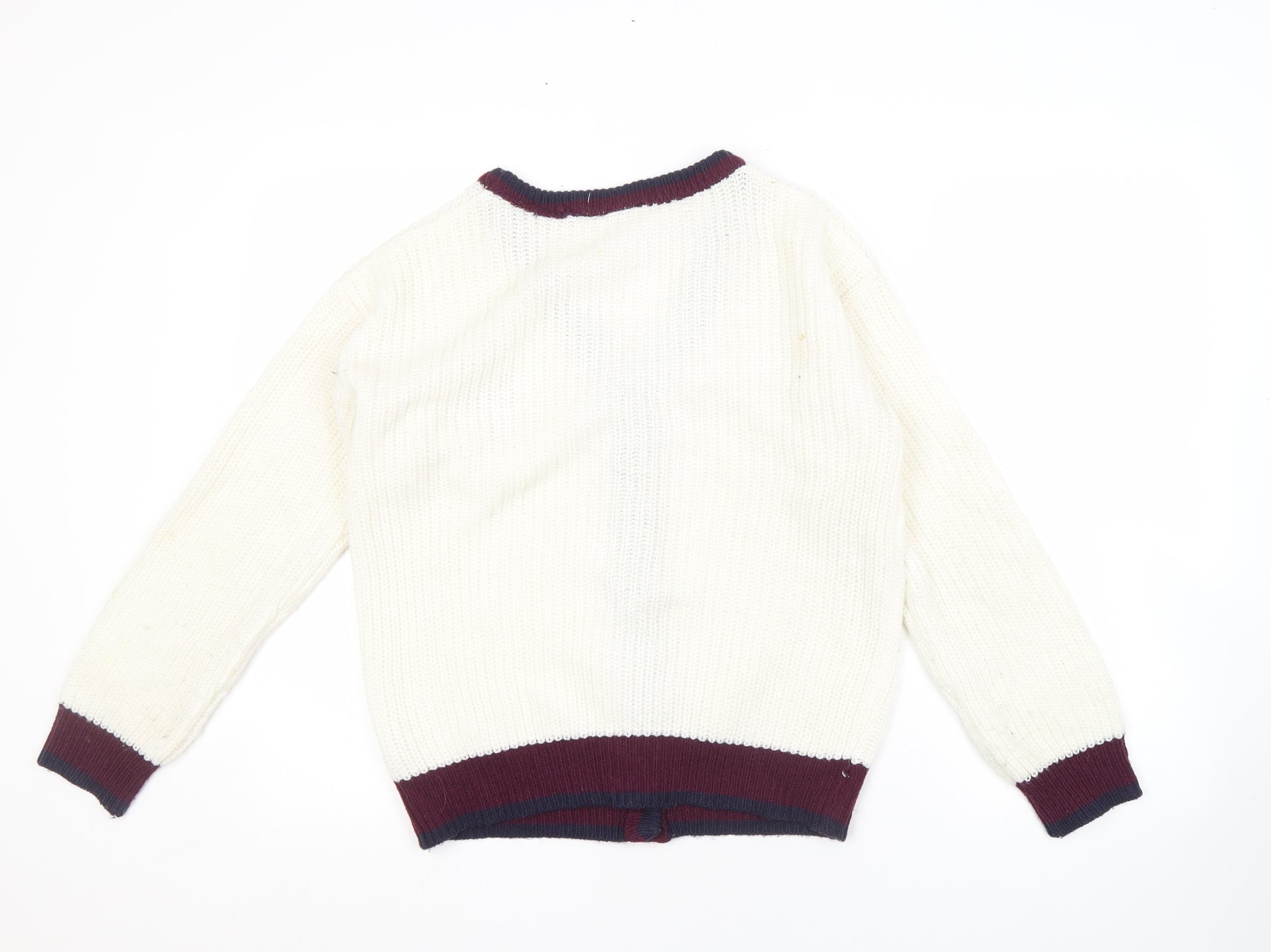 Girls White Cardigan, 12-13 Years, Embroidered V-Neck