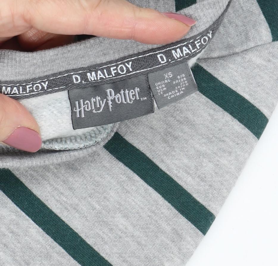 Embrace your magical side with this Harry Potter unisex sweatshirt, ideal for fans of the Slytherin house. Featuring a classic grey colour with a stylish striped design, this pullover sweatshirt is perfect for both autumn and winter seasons. Crafted from a lightweight jersey fabric, it ensures comfort and warmth with its blend of cotton and polyester materials. The standout feature of this sweatshirt is the iconic Slytherin logo, adding a touch of wizardry to your casual wardrobe. Available in size XS, it offers a regular fit that suits various styles, making it ideal for fans or collectors. The crew neck design and long sleeves provide a timeless look that pairs well with jeans or casual trousers. Machine washable for easy care, this sweatshirt represents the ideal balance between style and practicality. Whether you're heading to a casual meetup or lounging at home, let your house pride shine with this official Harry Potter merchandise. The condition is marked as excellent with no visible damages, ensuring quality and longevity. Don’t miss out on adding this striped pullover to your collection, reflecting both school spirit and a fashion-forward mindset.