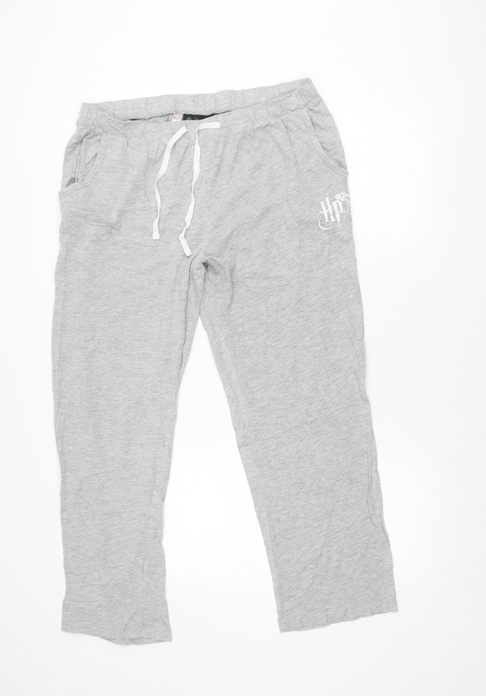 Add a touch of magic and comfort to your lounge or bedtime routine with these officially licensed Harry Potter women’s pyjama pants. Crafted from a soft and breathable jersey fabric with a material makeup of 90% cotton and 10% viscose, these trousers are lightweight and comfortable, making them ideal for wearing throughout spring, autumn, and winter. The classic grey colour brings a versatile and subtle look, while the Harry Potter themed logo accent adds the perfect fan-inspired detail. Designed in a roomy and easy fit, this pair is finished with a drawstring waistband, ensuring an adjustable and comfortable wear. These pyjama pants are practical for everyday lounging or sleeping, with their soft cotton blend fabric allowing for excellent flexibility and comfort. The machine washable fabric also makes them very low maintenance, perfect for regular use. Ideal for Harry Potter fans, these pyjama bottoms bring together style, fandom, and ease, making them an excellent choice either for yourself or as a thoughtful gift. Whether you’re watching your favourite Harry Potter films, reading the books, or simply relaxing at home, these women’s Harry Potter pyjama trousers provide a cosy and magical touch to your loungewear wardrobe. Offered in size UK 14, they sit comfortably on the waist with a flattering relaxed cut down the leg. In excellent pre-owned condition, these trousers show no visible flaws, allowing you to enjoy the comfort and style of branded Harry Potter nightwear at a fraction of the retail price. Pair them with your favourite top for effortless comfort and an undeniably magical feel, bringing Hogwarts into your home.