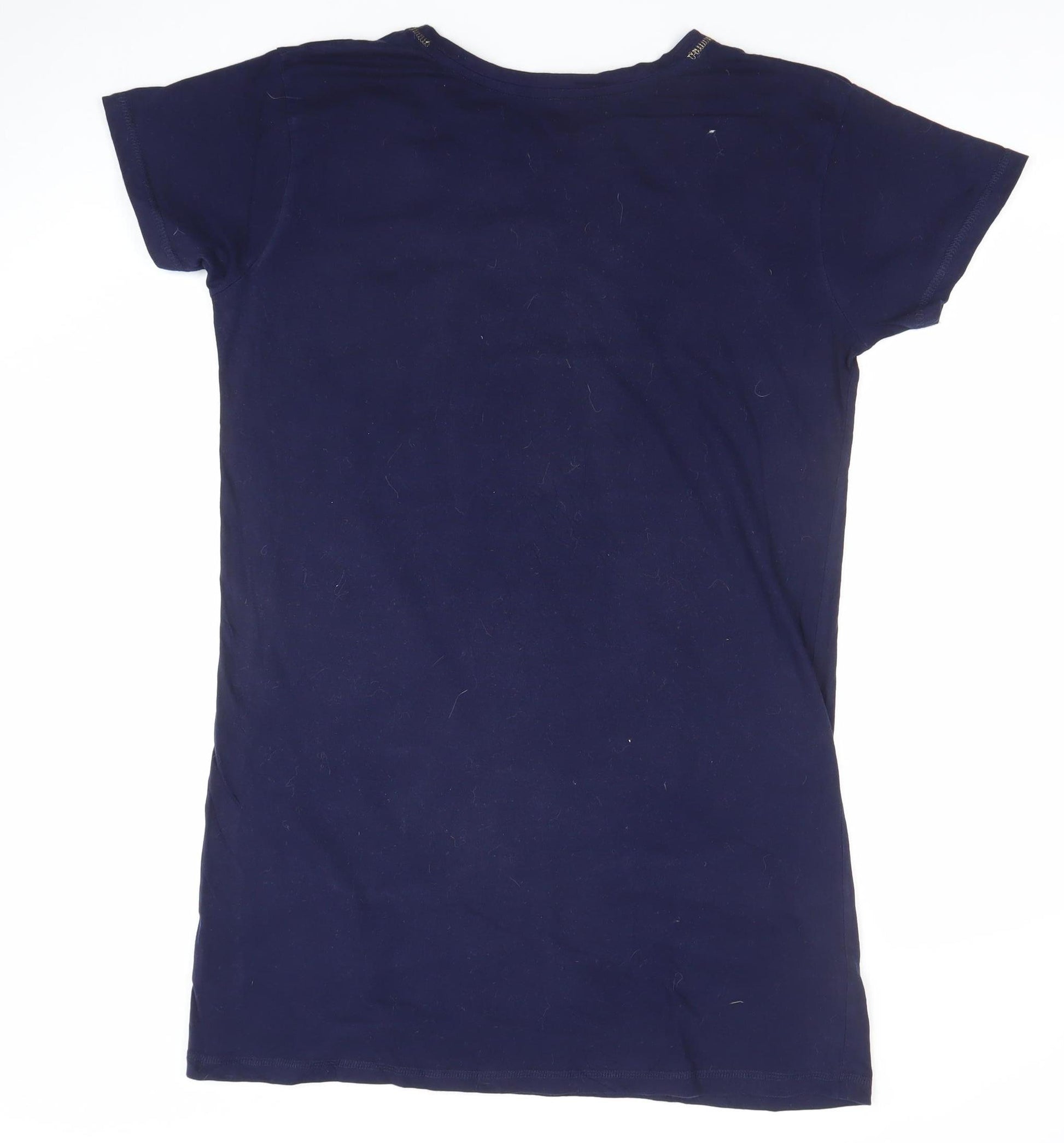 Bring a touch of magic to your bedtime routine with this charming Harry Potter Women’s Blue Glitter Hogwarts Nightshirt. Perfect for relaxed evenings and cosy nights, this officially licensed nightshirt is crafted from 100% soft cotton, providing excellent comfort and breathability. The jersey fabric feels gentle against the skin, making it a great choice for lounging or sleeping in every season from spring through winter.The nightshirt showcases an enchanting design in deep blue featuring a striking gold glitter graphic of the iconic Hogwarts castle, complete with the famous Harry Potter logo and shimmering star details. The short sleeves, round crew neckline, and relaxed fit make it a comfortable and easy-to-wear style suitable for every Harry Potter fan.Ideal for women who love comfortable yet magical sleepwear, the lightweight fabric ensures ease of movement while maintaining softness wash after wash. This piece makes a perfect gift for fans of the wizarding world, ideal for birthdays, Christmas, or simply as a special treat for yourself.In very good pre-owned condition, with only light signs of gentle wear and some minor lint visible, this nightshirt remains stylish and ready for plenty more evenings of comfort and magic. Machine washable for effortless care.Whether you’re casting spells before bedtime or relaxing with your favourite Harry Potter film, this nightshirt adds a magical touch to every night. Perfect for women who value both comfort and a bit of sparkle in their nightwear collection.