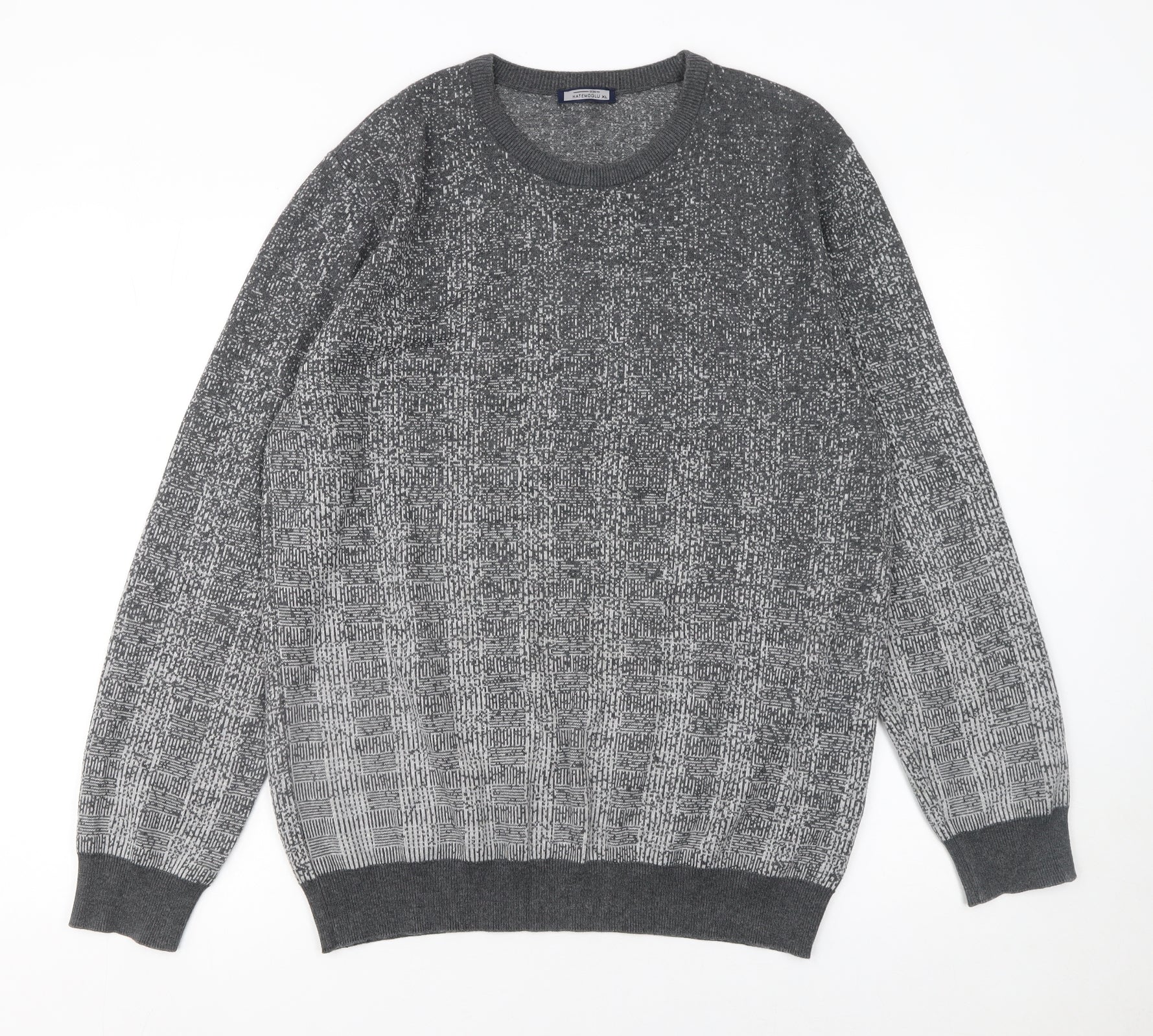 Men’s Grey Geometric Knit Crew Neck Jumper XL