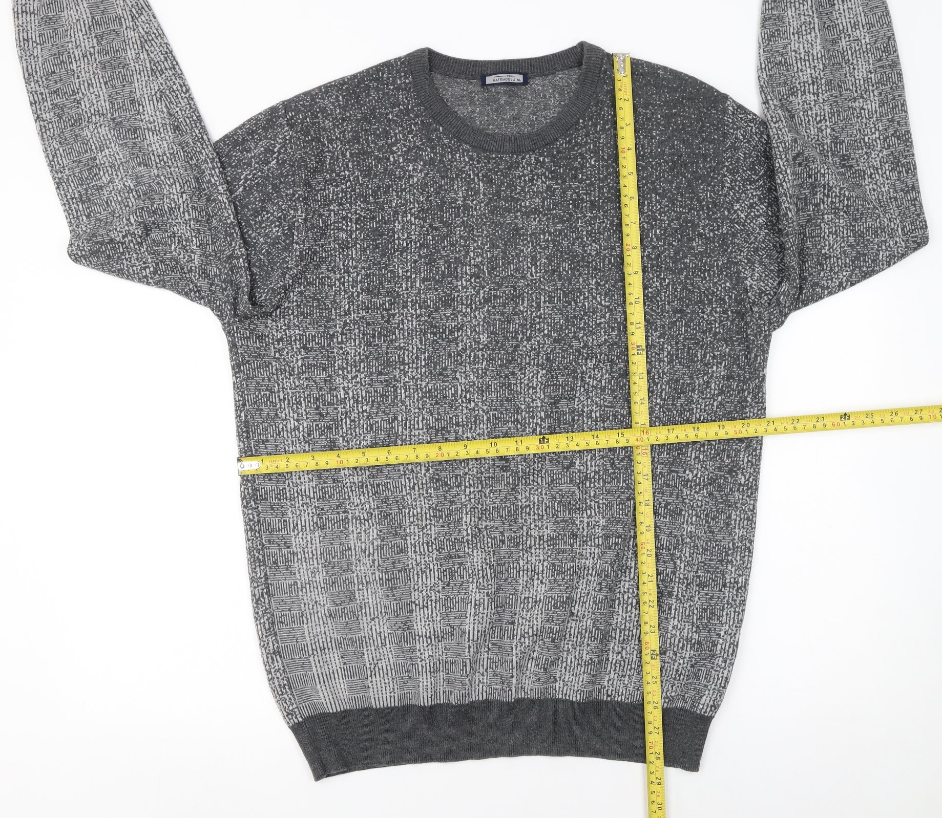 Stay effortlessly stylish and comfortable with this Hatemoglu Men’s Grey Crew Neck Jumper in size XL. Crafted from a balanced blend of 50% cotton and 50% acrylic, this high-quality knit offers an excellent combination of warmth, breathability, and durability, making it perfect for year-round wear. The lightly textured geometric pattern gives a modern twist to a classic pullover design, while the graduated grey tones add refined visual appeal that pairs easily with jeans, chinos, or smart trousers. Featuring a crew neckline and long sleeves, this jumper provides a relaxed fit for everyday comfort. Its tight-knit fabric type delivers a sleek and smooth finish, ideal for layering under a jacket or coat during the cooler months. The cotton ensures softness against the skin, and the acrylic enhances fabric elasticity and maintains the shape even after multiple wears. The All Seasons versatility means it works as both an autumn layer or a spring outer top. The jumper’s quality craftsmanship is evident in the ribbed cuffs, hem, and neckline, designed to hold their form and resist stretching. Simple yet stylish, this pullover embodies a refined casual look suitable for relaxed outings, casual Fridays, or home gatherings. With machine washable convenience, it’s effortlessly easy to maintain and ready to wear again and again. Condition is excellent with minimal signs of prior use and no visible marks or damage. This makes it a great option for someone looking for a premium, comfortable piece at a fantastic value. Hatemoglu is known for timeless menswear that balances modern design with traditional quality, and this jumper reflects that heritage beautifully.Whether you’re layering up or keeping things simple, this grey geometric knit jumper ensures you’ll stay warm while maintaining a sophisticated, understated look. Its versatility and neutral tone make it a wardrobe essential for any modern man.