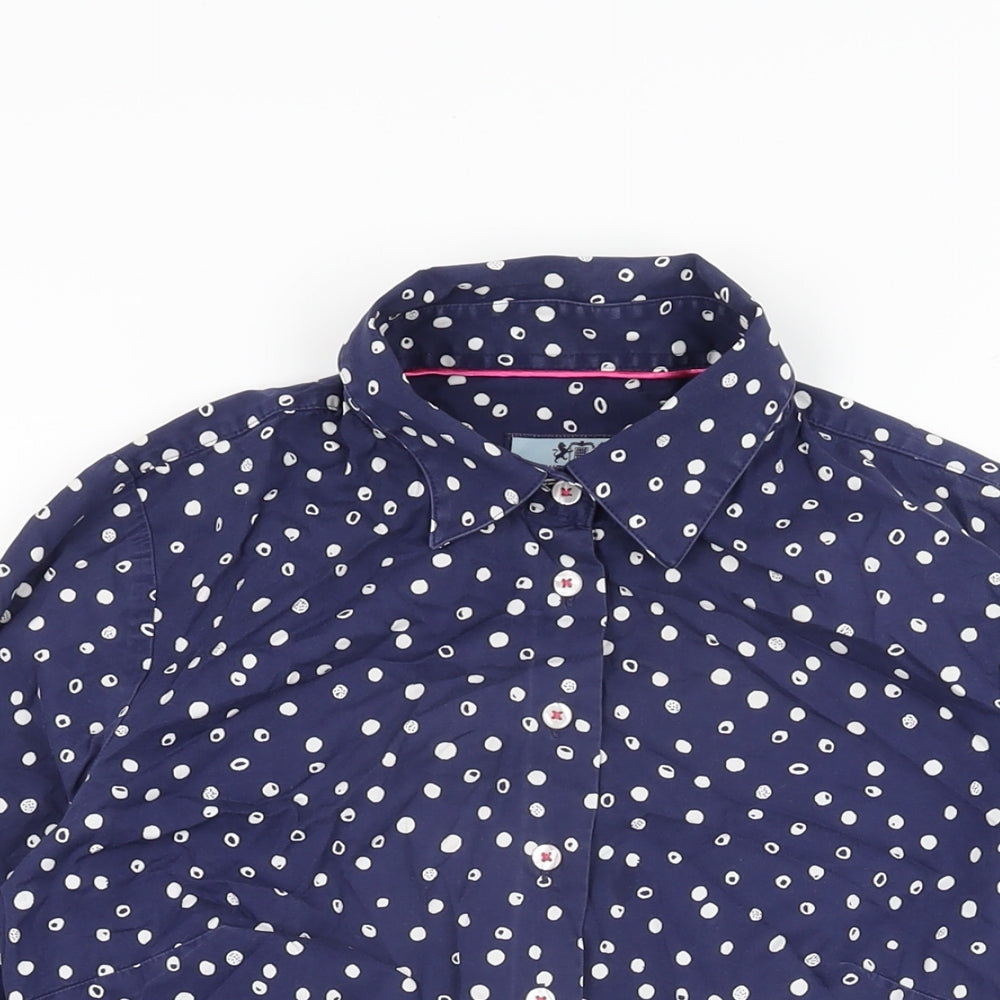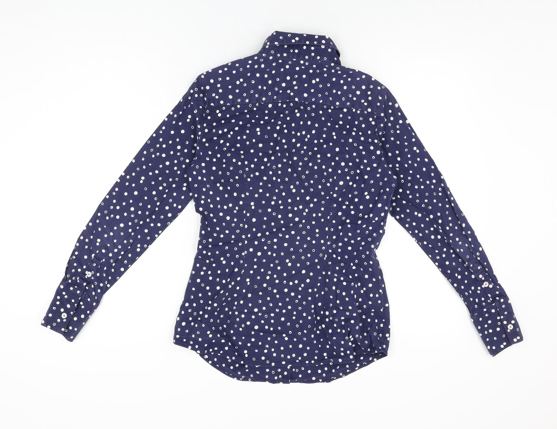 Womens Blue Polka Dot Cotton Basic Button-Up Size 8 Collared