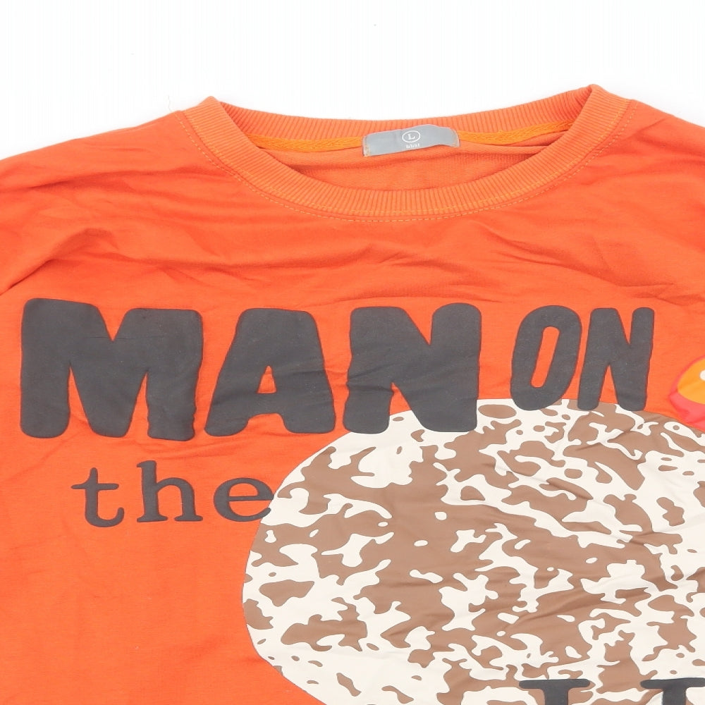 Mens Orange Geometric Cotton Pullover Sweatshirt Size L - Man On The Moon