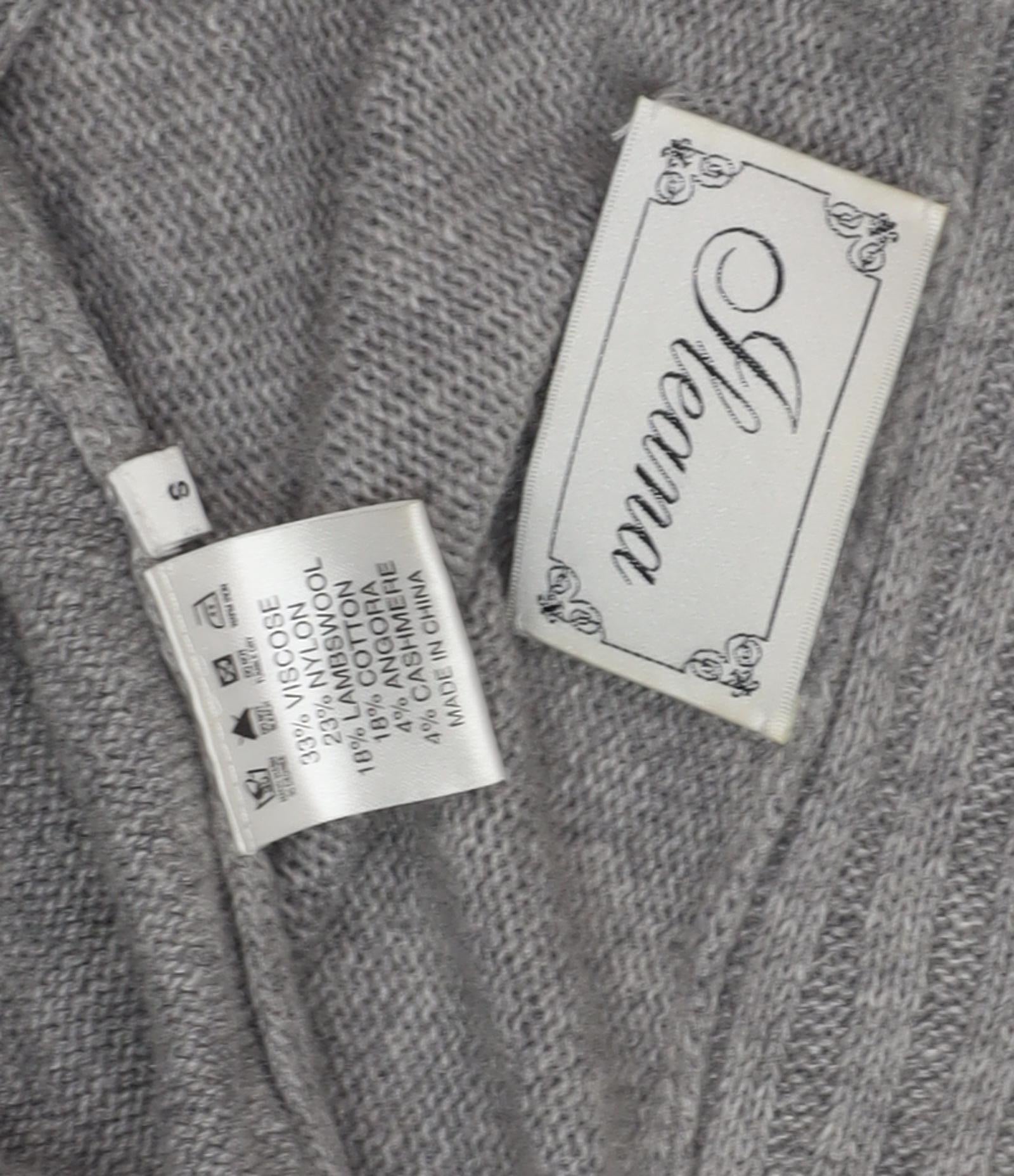 Introducing the Heana Women's Grey Cardigan, the perfect addition to your autumn and winter wardrobe. Crafted with a luxurious blend of materials, including viscose for a soft touch and cashmere for added warmth, this cardigan is designed for ultimate comfort. Featuring a regular fit and long sleeves, it offers a flattering silhouette, suitable for casual occasions. The Grey colour adds a versatile touch, making it easy to pair with a variety of outfits. Despite a small stain on the sleeve, this cardigan maintains its charm and functionality. Elevate your style with this classic piece, ensuring you stay cosy and chic during the colder months.