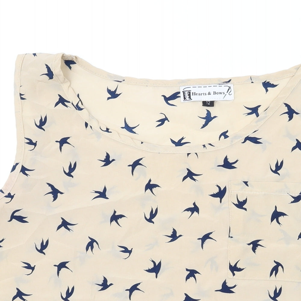 Womens Beige Geometric Polyester Basic Tank Size 12 Scoop Neck - Birds