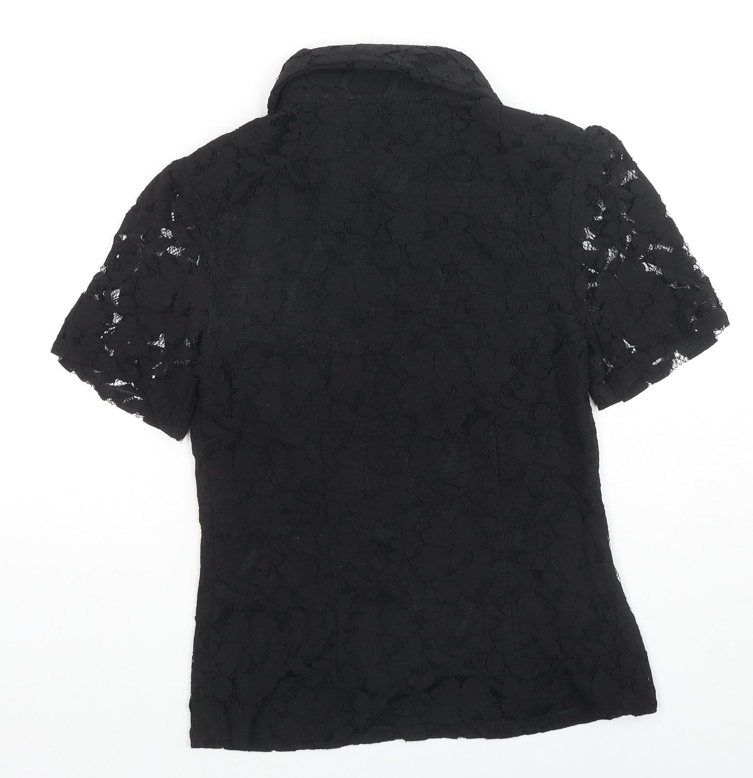 Womens Black Floral Nylon Basic Button-Up Size XS Collared