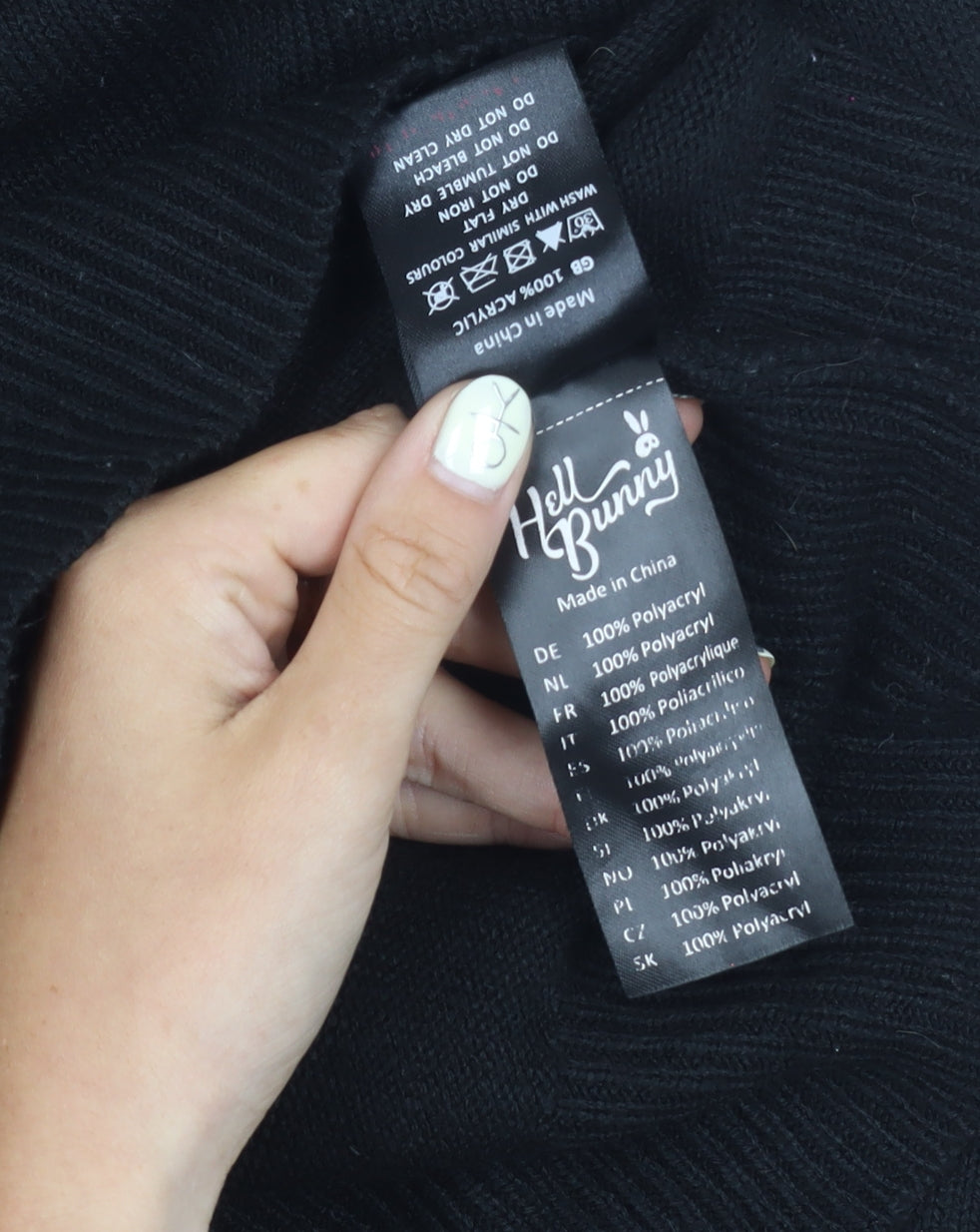 Introducing a chic and stylish Hell Bunny jumper designed for women who appreciate both quality and style. This black jumper, fitting size 14, is perfect for adding a touch of elegance to your wardrobe. Crafted from 100% polyacrylic, it offers a soft and comfortable feel, ensuring that you stay cosy and fashionable throughout the colder months. With its long sleeve design, this jumper is perfect for layering or wearing on its own for a casual yet polished look. This jumper from Hell Bunny is a versatile piece that can be dressed up or down, making it a must-have in your closet. The simplicity of the black colour ensures that it effortlessly complements any outfit, while the regular fit provides comfort without compromising on style. Although it does not feature any additional accents or patterns, the clean and minimalist design speaks to its timeless appeal. Ideal for a variety of occasions, this jumper is as suitable for a casual day out as it is for a relaxed evening gathering. Its excellent condition, with no visible defects, guarantees that you'll be adding a quality garment to your collection. Whether for autumn, winter, or a chilly spring day, this Hell Bunny jumper is the perfect choice for maintaining both warmth and style. Don't miss the chance to enhance your wardrobe with this elegant and versatile piece, perfect for any season and occasion. Get yours today and experience the comfort and elegance of Hell Bunny’s design.