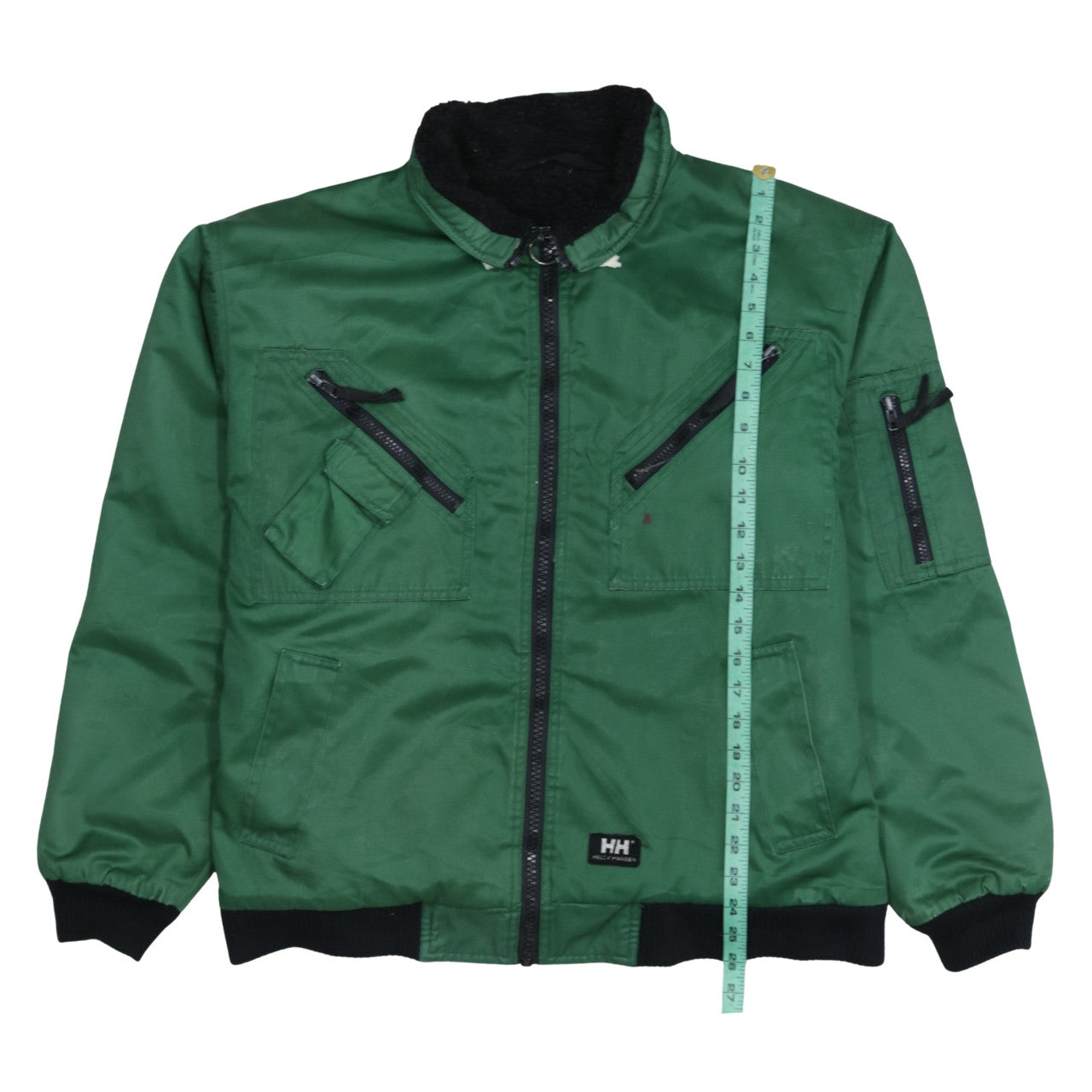 Stay warm and stylish this season with this Helly Hansen men's green bomber jacket. Crafted from a durable nylon and polyester outer shell, this jacket offers both weather resistance and urban style. Its soft polyester lining provides extra warmth and comfort, making it ideal for chilly outdoor adventures or everyday wear. The vibrant green colour gives a bold look, while the zip fastening and multiple zip pockets add practicality and a rugged, utility-inspired finish. Designed in a classic bomber style with ribbed cuffs and hem, it ensures a secure, comfortable fit and effective protection against the wind. The stand-up collar enhances warmth around the neck and adds a sleek profile to the garment. Suitable for autumn and winter seasons, this jacket is perfect for casual outings, travel, or outdoor activities such as hiking and walking. The understated Helly Hansen logo accent and functional zip details add an authentic premium touch. While in very good pre-owned condition with only a small light mark on the front and minor signs of use, it maintains excellent overall quality. Helly Hansen's heritage in creating dependable outerwear ensures both performance and durability in varied conditions. This jacket offers dependable warmth, a practical design and a timeless outdoor aesthetic that will complement a wide range of outfits. Perfect for those seeking a classic, versatile coat that combines functionality with a clean, modern look. Update your wardrobe with this must-have men's winter jacket that balances comfort and adventure-ready style effortlessly.
