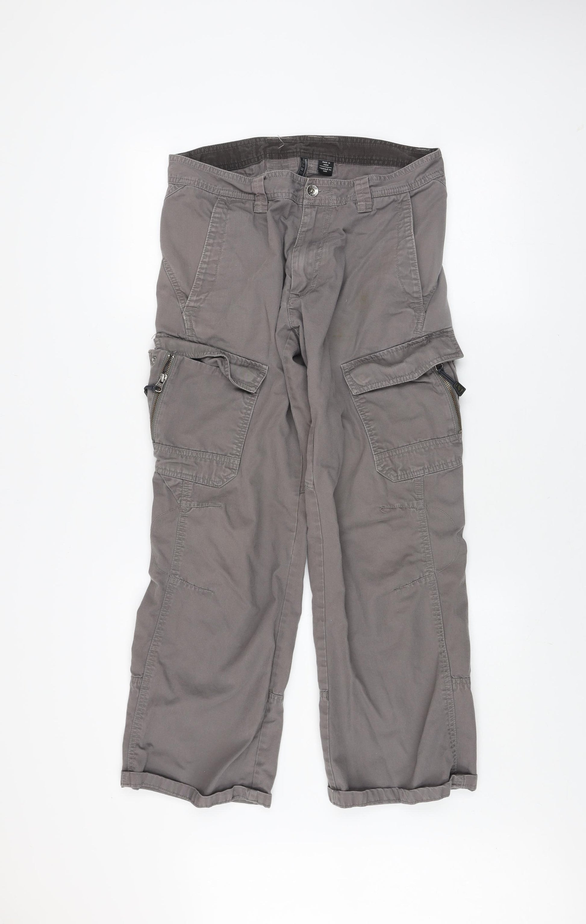 Men's Grey Cargo Trousers Size 32 Regular Fit Cotton