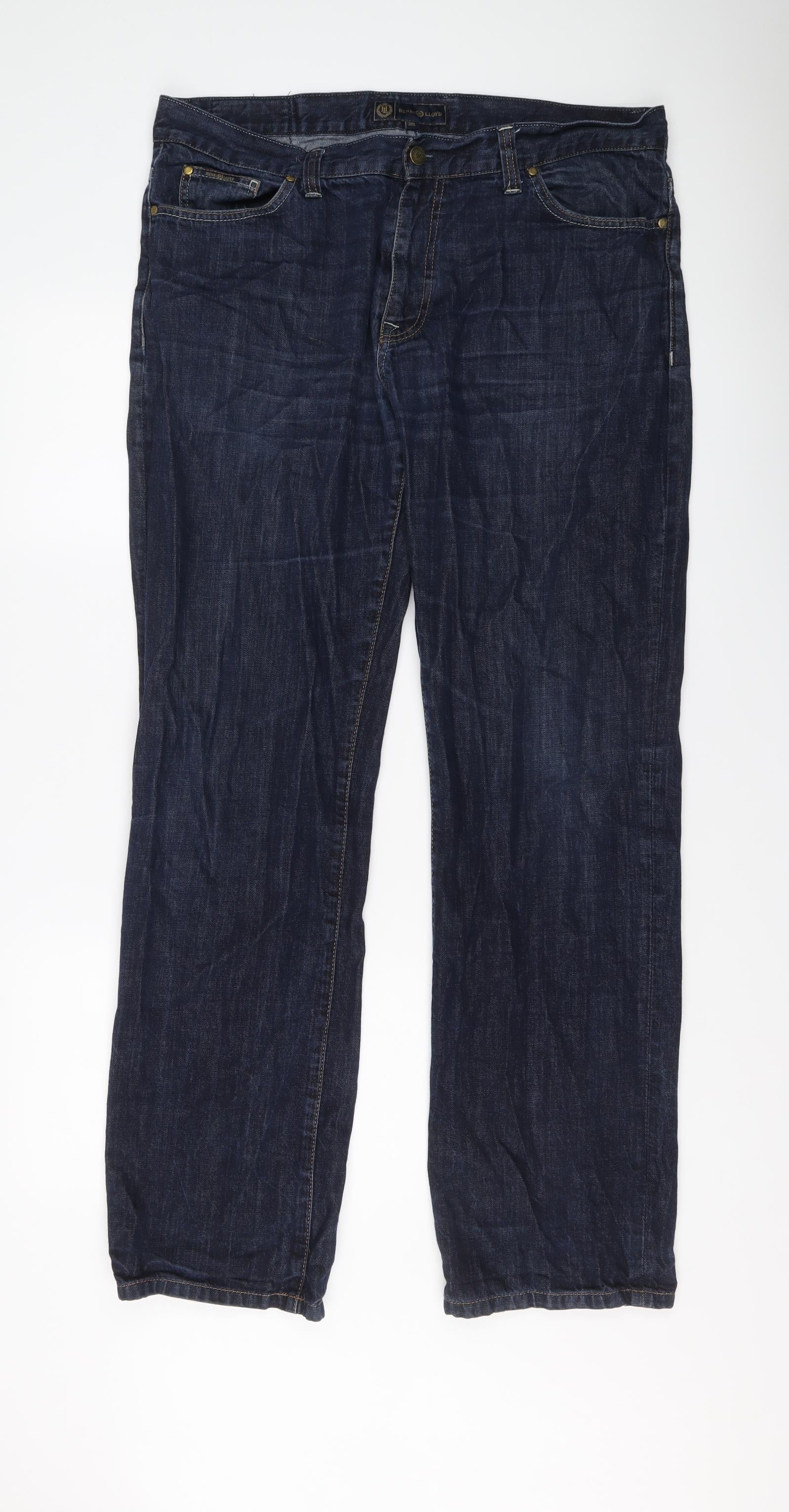 Mens Blue Cotton Straight Jeans Size 38 in L33 in Regular Button