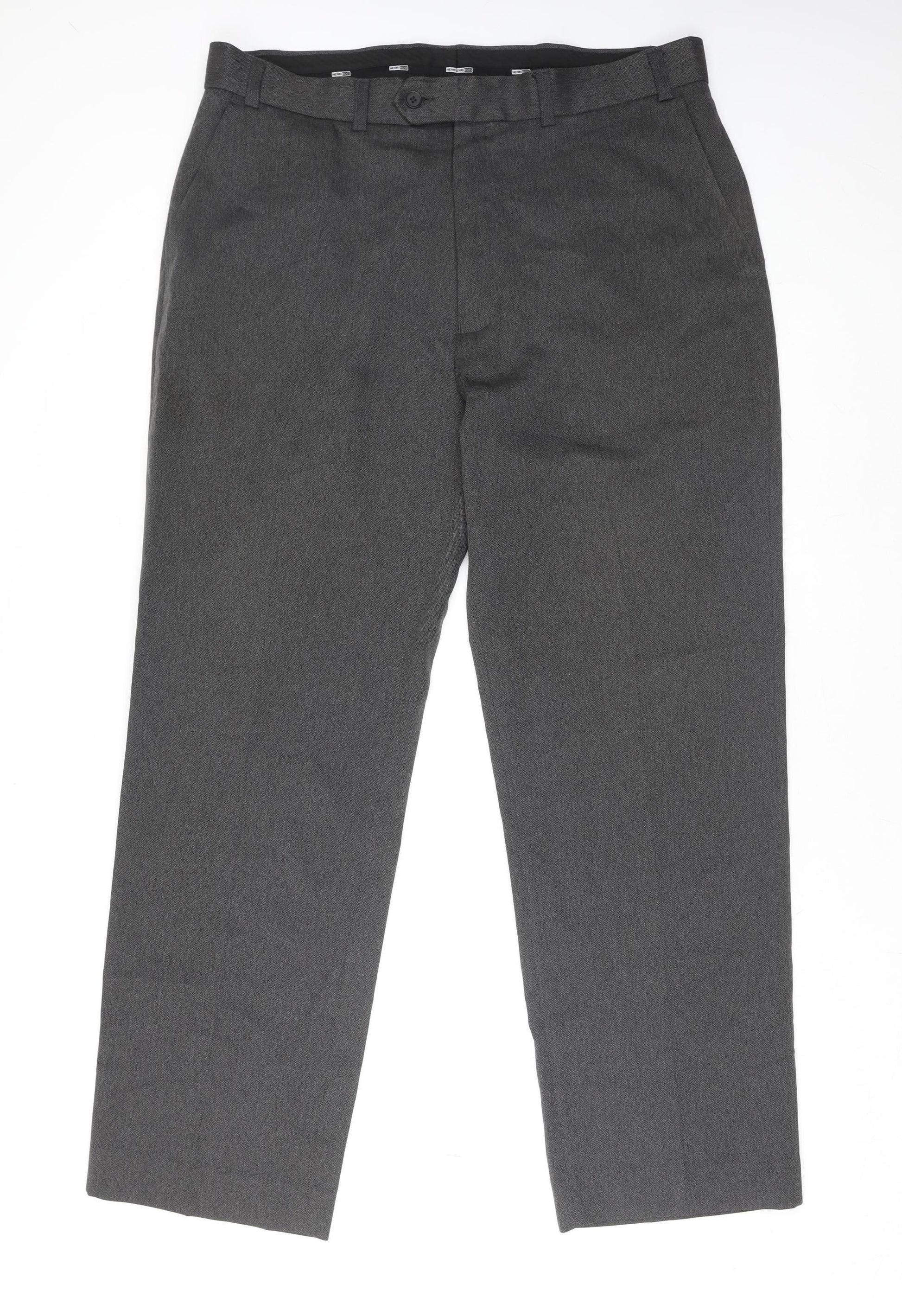 Men's Grey 38W 31L Classic Polyester Dress Trousers