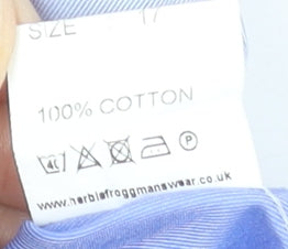 This distinguished Herbie Frogg men's long sleeve shirt embodies refined style and craftsmanship. Designed in a timeless blue hue, it is crafted from 100% cotton for superb softness, comfort, and breathability — an ideal choice for both business and formal occasions. The woven cotton fabric ensures a crisp and polished appearance, suitable for the modern gentleman seeking sophistication without compromising on wearability. The shirt is presented in a slim fit silhouette that flatters the physique, offering a sleek and tailored structure enhanced by clean lines and expert stitching. The point collar maintains a professional edge, making it versatile for paired wear with or without a tie. Featuring button fastening and barrel cuffs, the shirt maintains a classic aesthetic while allowing for practical styling options. The limited edition label adds a touch of exclusivity, reflecting Herbie Frogg’s heritage of London tailoring since 1969. Perfect for pairing with a tailored suit or chinos, this shirt transitions seamlessly from an office setting to an elegant evening affair. The lightweight and breathable cotton makes it suitable for all-day wear, ensuring comfort in both summer and cooler seasons. This garment shows minimal wear with light creasing from storage but remains in excellent condition overall. Offered at a competitive price, this Herbie Frogg blue slim fit shirt is a superb addition to any wardrobe, exemplifying understated British menswear elegance and versatility. Ideal for business meetings, formal dinners, weddings, or professional workwear, it encapsulates the fusion of heritage and contemporary style that defines the Herbie Frogg brand.