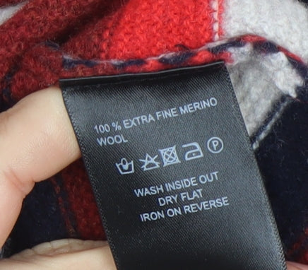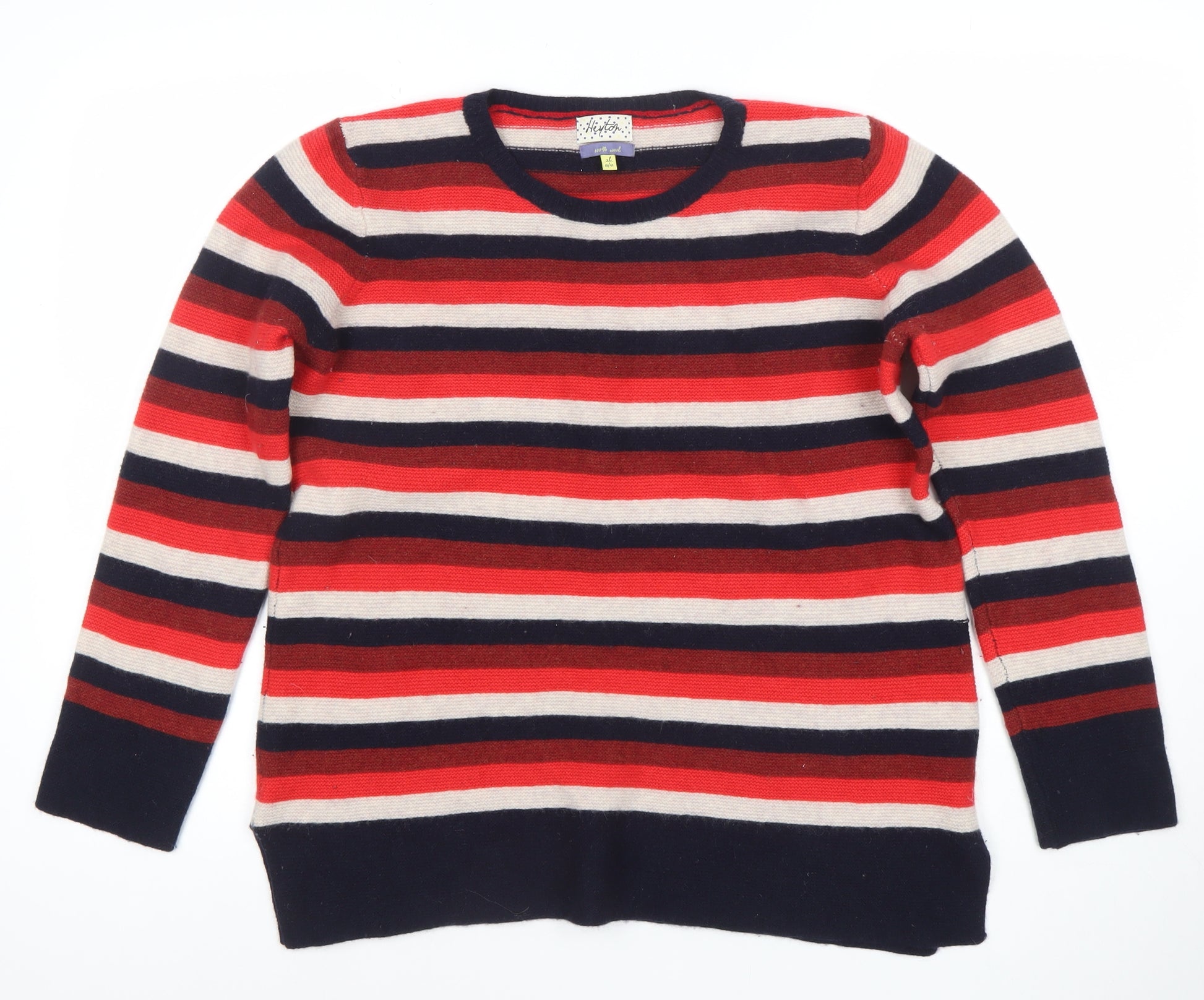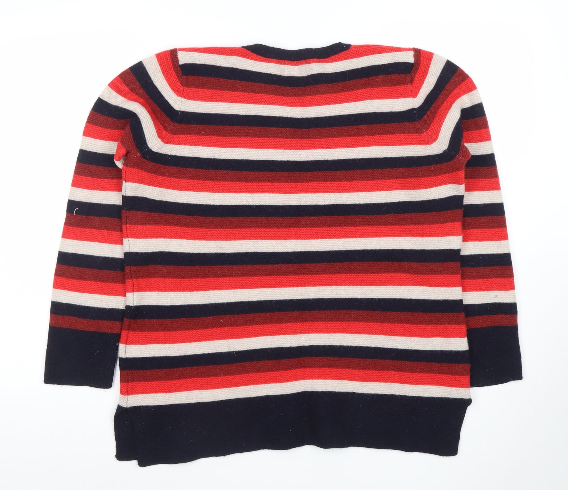 Women's Red Stripe Crew Neck Jumper XL 100% Merino Wool