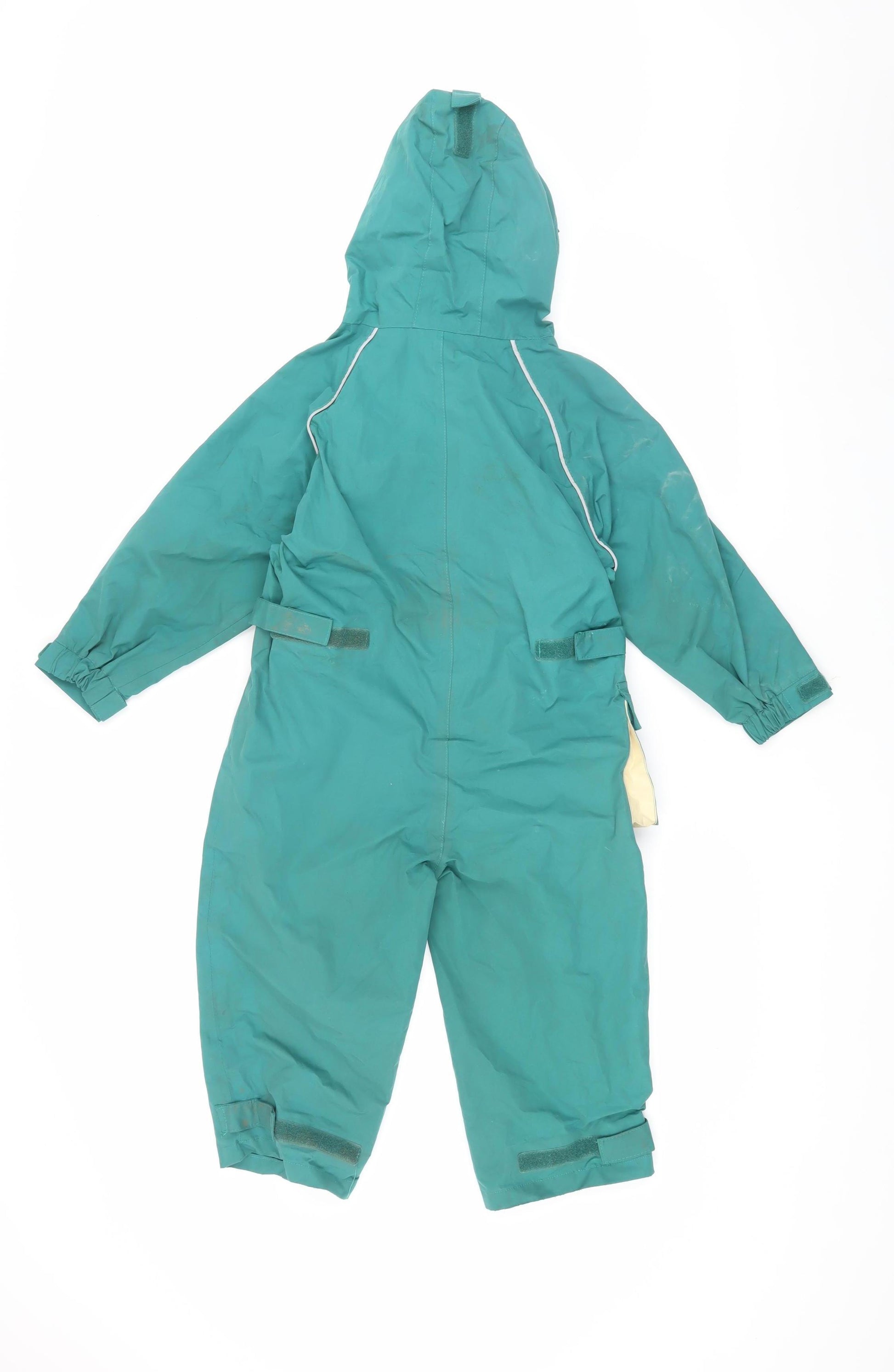 Explore the outdoors with confidence with this versatile Hippychick waterproof coverall. Ideal for young adventurers aged 3-4 years, this all-in-one suit is crafted from durable polyester, offering outstanding waterproof and windproof performance. The vibrant green fabric ensures your little one stands out, while the zip closure and hood provide extra coverage and warmth. Whether it's exploring local parks or enjoying a rainy day stroll, this coverall promises breathable comfort, keeping your child cosy throughout the seasons. Designed for activewear, it's perfect for those who love outdoor escapades. Easy to care for, it is machine washable, ensuring convenience for busy parents. Though in very good pre-loved condition, some slight wear is visible, which speaks to its days of adventuring. Equip your child for unforgettable outdoor experiences with this reliable and stylish outfit.