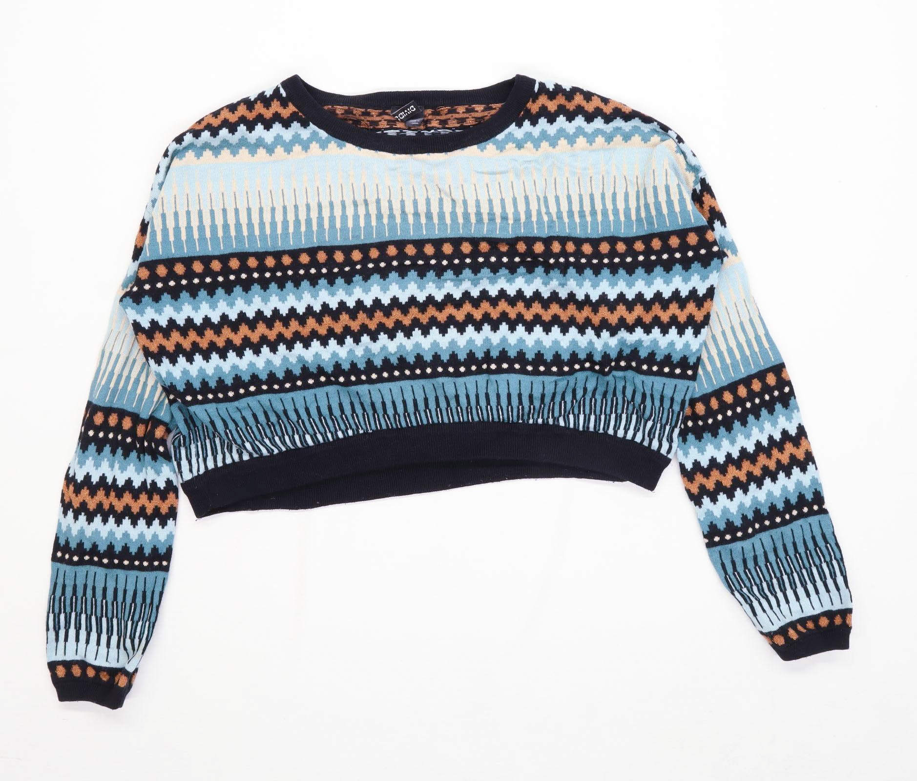 Womens Size 14 Geometric Cotton Blend Blue Jumper (Regular)