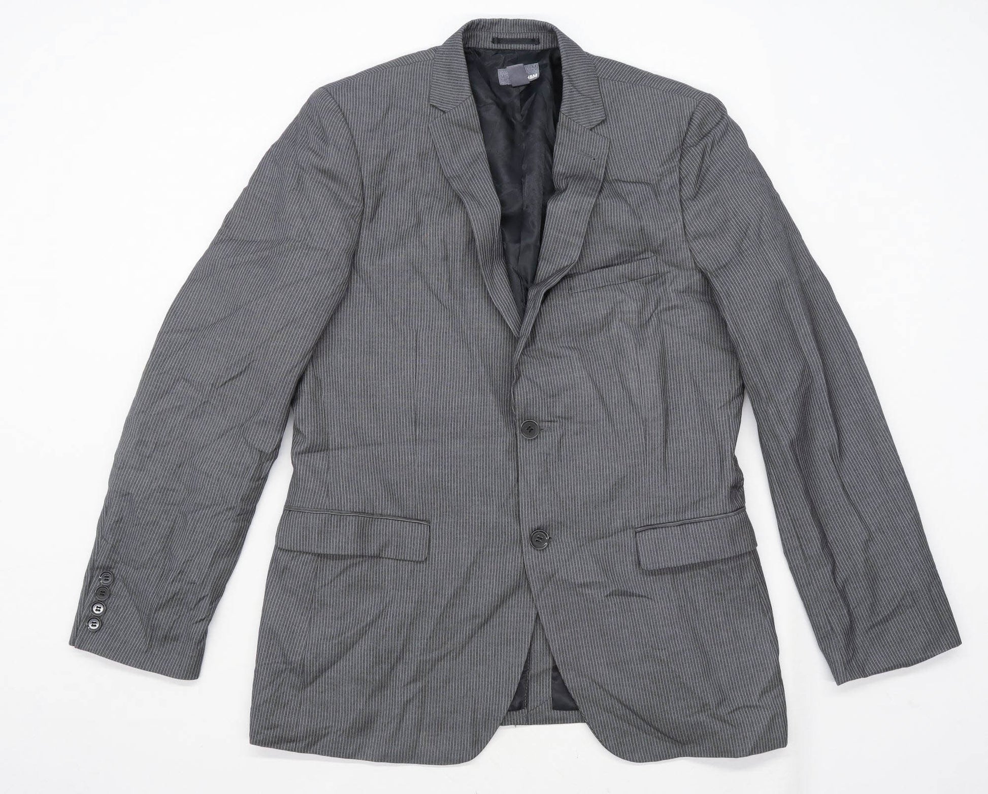 Mens Striped Grey Suit Jacket 40 Chest (Regular)