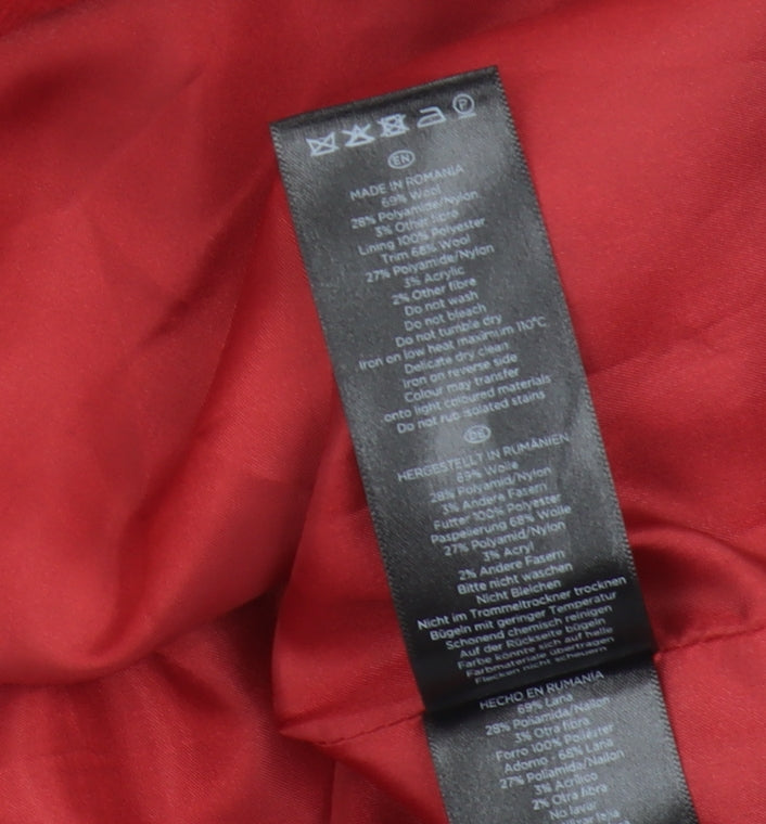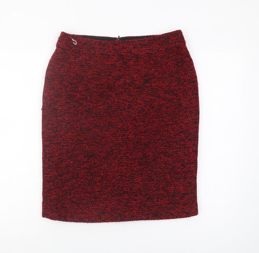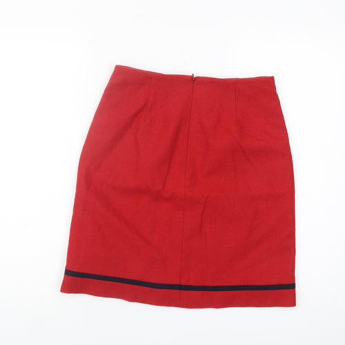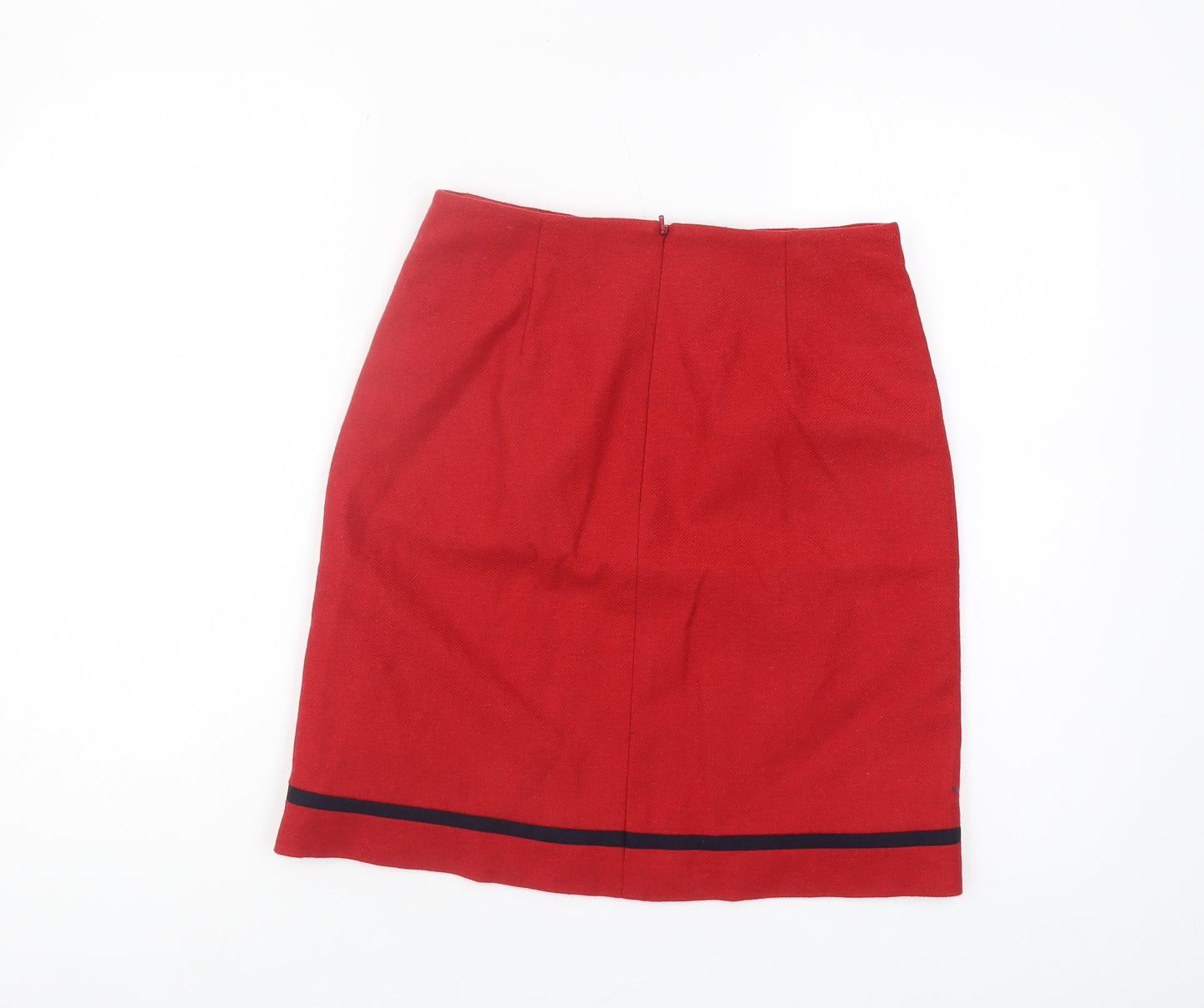 Discover the elegance of Hobbs with this chic red pencil skirt, tailored to perfection for the modern woman. With its classic straight and pencil design, it exudes a professional sophistication ideal for workwear or a smart-casual outing. Crafted from a rich blend of wool, polyamide, and acrylic, it promises warmth and comfort while maintaining a refined appearance. The skirt's striking red hue is sure to add a bold touch to your wardrobe, harmonized by its smooth, button-accented front and demure zip closure at the back. Sized at UK 8 and designed for regular fit, it offers versatility for various body types. While there are no striking patterns, its simplicity is complemented by a fashionable black trim at the bottom, adding a subtle detail to its minimalist look. Though previously loved, it remains in excellent condition, ready to lend a splash of vibrant colour to your collection. This Hobbs skirt is more than just an item of clothing; it’s an invitation to embrace style with grace. Match it with a crisp blouse and heels for a formal ensemble, or pair it with a simple top for an elegant evening look. Dry clean only for optimal care.