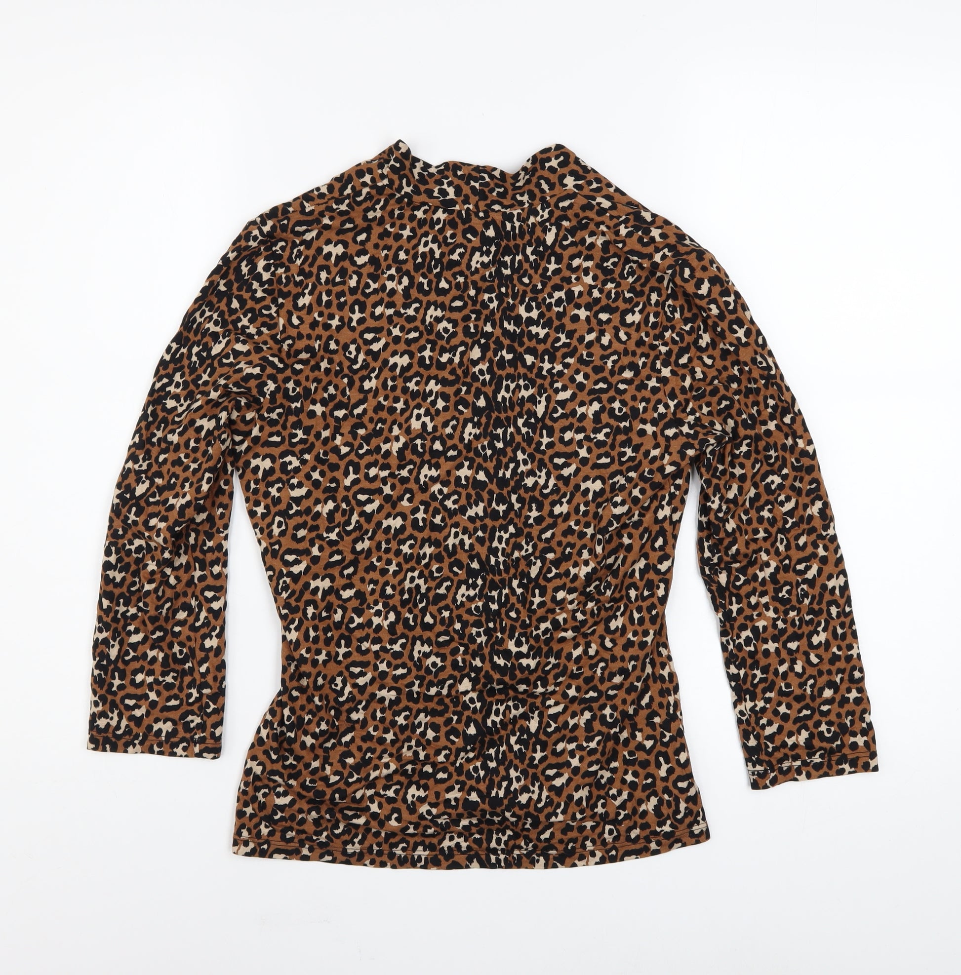 Add a touch of effortless elegance to your wardrobe with this stunning Hobbs Women’s Leopard Print Wrap Blouse. Designed in a flattering brown and black animal print pattern, this lightweight, stretchy jersey blouse features a sophisticated V-neckline and 3/4 length sleeves for a polished yet comfortable look. Its classic wrap style creates a feminine silhouette perfect for both casual outings and office settings. Crafted from a premium blend of 96% viscose and 4% elastane, the material offers a soft, breathable feel against the skin while providing just the right amount of stretch for a comfortable fit throughout the day. The blouse’s animal print pattern gives it a timeless appeal, suitable for all seasons—pair it with tailored trousers for workwear elegance, or dress it down with jeans for chic weekend wear. This Hobbs top combines quality craftsmanship with distinctive style, reflecting the brand’s commitment to refined feminine fashion. Whether layered under a blazer for a professional look or worn solo for evening events, it exudes confidence and sophistication. The pullover design ensures ease of wear, and its machine washable fabric makes it practical for everyday use. In excellent pre-owned condition with no visible flaws, this blouse maintains its luxurious appearance and soft texture. Ideal for the modern woman who values both comfort and style, this Hobbs blouse is an exceptional addition to any wardrobe, blending timeless design with contemporary versatility. Perfect for the Autumn and Winter seasons yet light enough to transition into Spring, this versatile piece embodies understated glamour and effortless everyday chic.