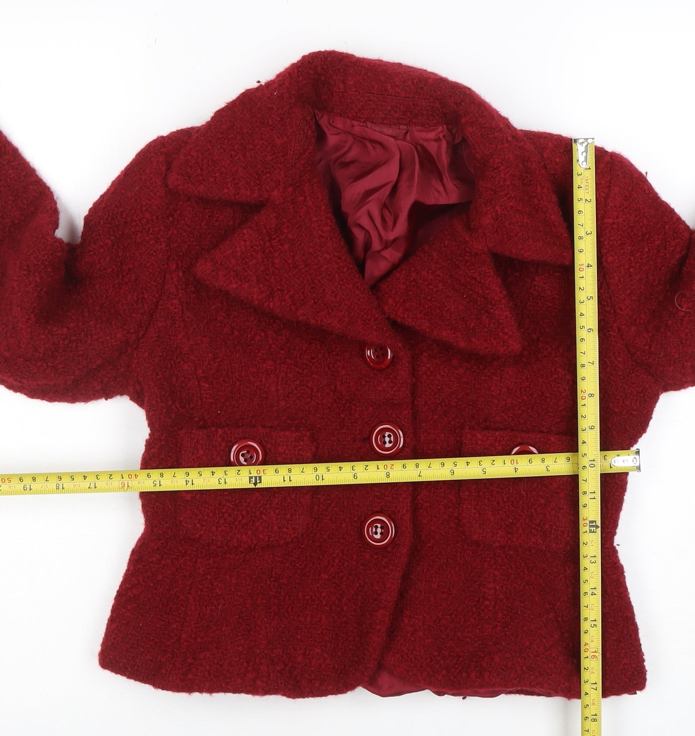 Women Red Wool Blazer Jacket Size 14 Classic Short Tweed