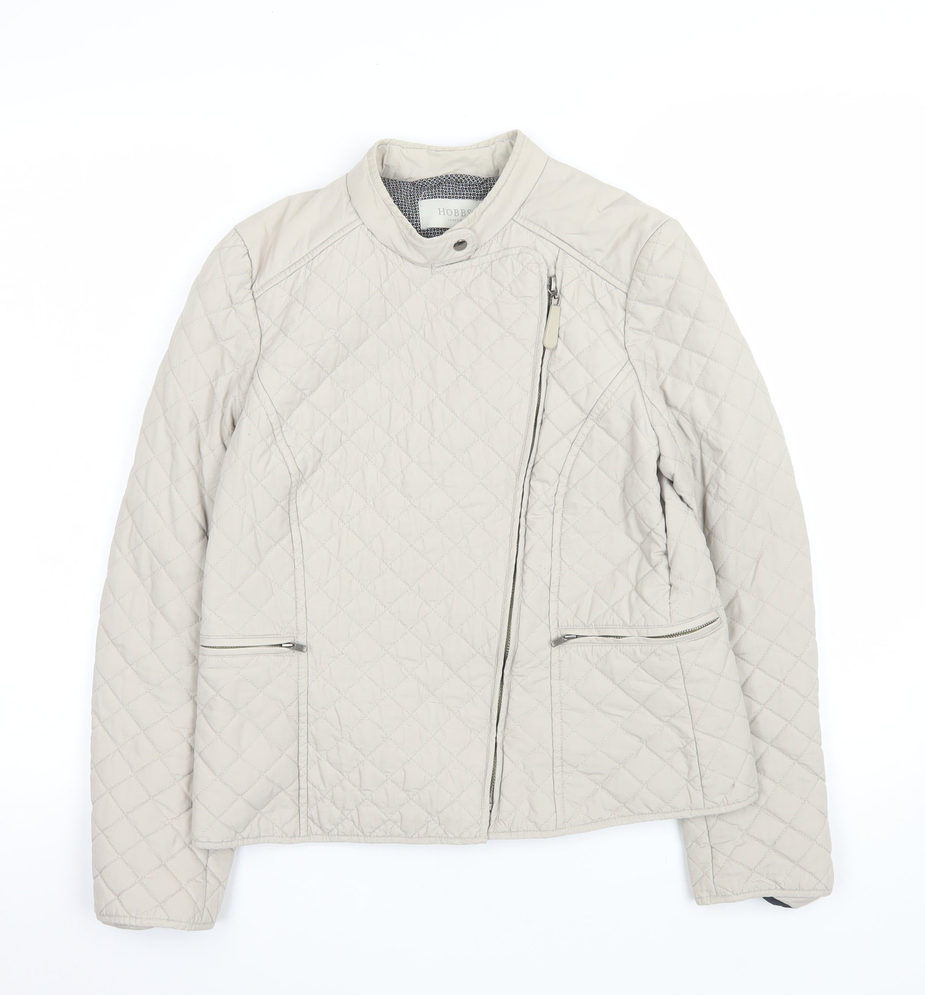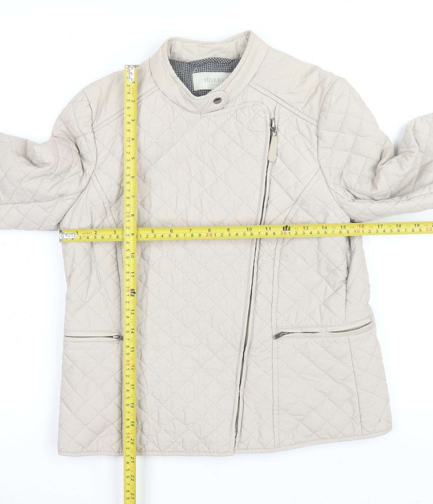 Discover the perfect blend of timeless style and everyday practicality with this Hobbs Women’s Beige Quilted Jacket in UK size 8. Crafted from 100% cotton, this jacket offers both softness and durability, while the quilted design adds a touch of sophistication. The tailored silhouette provides a flattering fit, making it a versatile choice for a range of occasions from casual outings to light layering during brisk commutes. Featuring a distinctive asymmetrical full-zip front, this piece ensures you stand out while maintaining classic elegance. The stand collar and long sleeves enhance warmth, while front zipped pockets offer functionality and a modern finish. The 100% acetate lining gives a smooth, premium feel against the skin and helps maintain shape through regular wear. Designed with a regular fit, this jacket allows effortless layering over light knits or blouses, making it suitable for transitional seasons such as spring and autumn. The neutral beige tone provides easy pairing with jeans, trousers, or skirts, elevating even simple outfits with a polished edge. The piece remains in excellent condition, showing minimal signs of wear and maintaining its fresh, clean appearance. True to Hobbs’ reputation for quality, this jacket delivers understated elegance and lasting comfort. Whether you’re heading out for a weekend stroll or dressing for a casual day at work, this versatile jacket achieves a refined yet relaxed aesthetic ideal for modern women. Machine washable for easy care, this stylish outerwear option combines practicality with timeless British fashion flair. A splendid addition to any wardrobe, this Hobbs quilted jacket embodies effortless sophistication and all-season wearability.