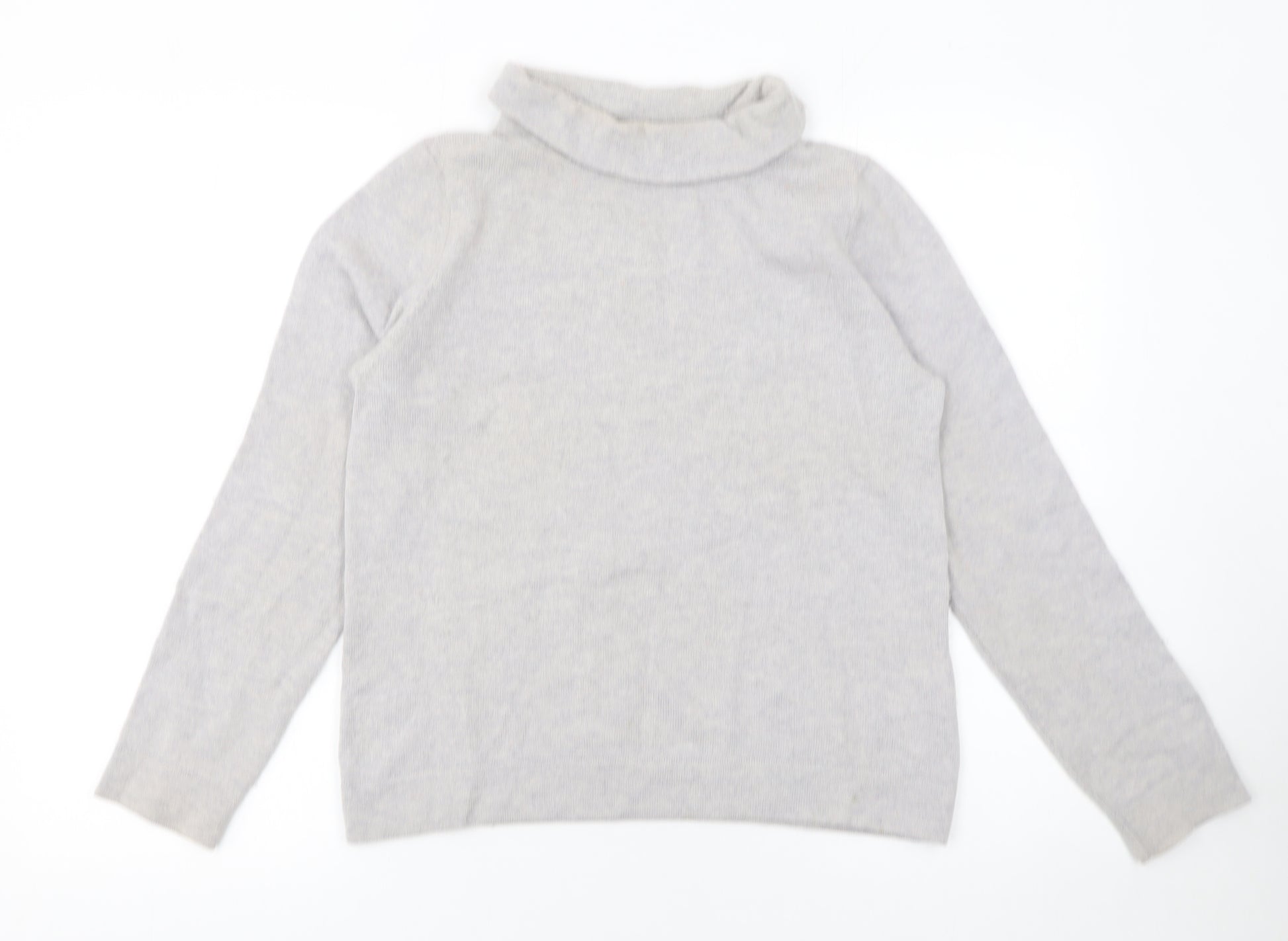 Step into effortless style and comfort with this Hobbs women’s grey roll neck jumper, an elegant wardrobe staple that combines softness with timeless design. Expertly crafted in a luxurious wool and cashmere blend, this piece feels beautifully gentle on the skin while providing cosy warmth perfect for chilly days. The neutral grey colourway ensures versatile styling, pairing effortlessly with tailored trousers for a refined work look or with jeans for relaxed weekend wear. Designed with a roll neckline, it brings a touch of sophistication and modern simplicity, ideal for layering or wearing alone as a chic statement piece. The fine-knit texture gives a smooth, polished appearance, while long sleeves and a regular fit maintain a flattering silhouette that drapes naturally. Its lightweight knit ensures comfort and insulation without bulk. Perfect for autumn and winter wear, this jumper embodies Hobbs’ dedication to quality materials and understated luxury. Although gently worn, it remains in very good overall condition, with only a faint mark near the lower front hemline that does not detract from its classic charm. A versatile addition to any capsule wardrobe, this wool and cashmere roll neck is both cosy and elegant—easy to dress up with a skirt and boots or down with denim and loafers. Invest in this timeless piece and enjoy the reliable quality that Hobbs is renowned for. Ideal for casual or office settings, it’s the sophisticated knit every modern woman needs. Don’t miss your chance to add this premium cashmere-blend essential to your collection today.