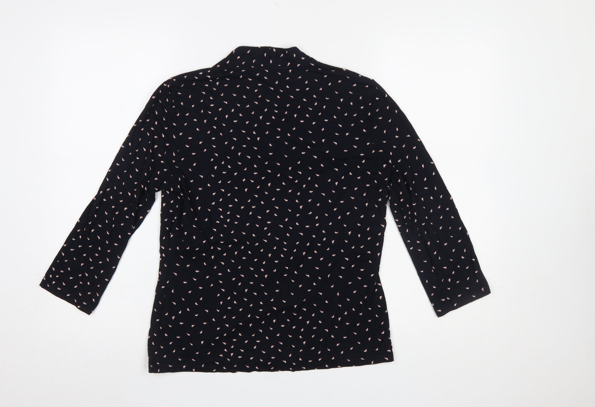 Elevate your wardrobe with this elegant Hobbs Women's Black Floral V-Neck Wrap Blouse in size M. Designed with a timeless silhouette, this blouse features a flattering V-neckline and three-quarter sleeves for a refined yet comfortable look that transitions seamlessly from work to weekend wear. Crafted from a soft, high-quality jersey fabric made of 96% viscose and 4% elastane, it offers a gentle stretch and smooth drape, ensuring a perfect fit that flatters every figure. The delicate all-over floral pattern adds a touch of feminine charm without being overpowering, making it a versatile piece that pairs effortlessly with tailored trousers, skirts, or jeans for a chic finish. This Hobbs blouse is ideal for spring, summer, and autumn seasons, combining lightweight comfort with a sophisticated wrap-style design that enhances movement while maintaining structure. Its pullover closure and easy-care composition make it a practical yet stylish choice for busy lifestyles. Whether you’re heading to the office, a casual weekend outing, or an evening catch-up with friends, this top offers understated luxury and effortless elegance synonymous with the Hobbs London brand. The blouse remains in excellent pre-owned condition with no visible signs of wear, ensuring that it looks polished and ready for continued use. Bring a touch of modern classic charm to your collection with this versatile Hobbs blouse, designed to elevate your everyday ensemble. A perfect example of British sophistication, this piece provides comfort, confidence, and timeless appeal all in one beautifully made garment.