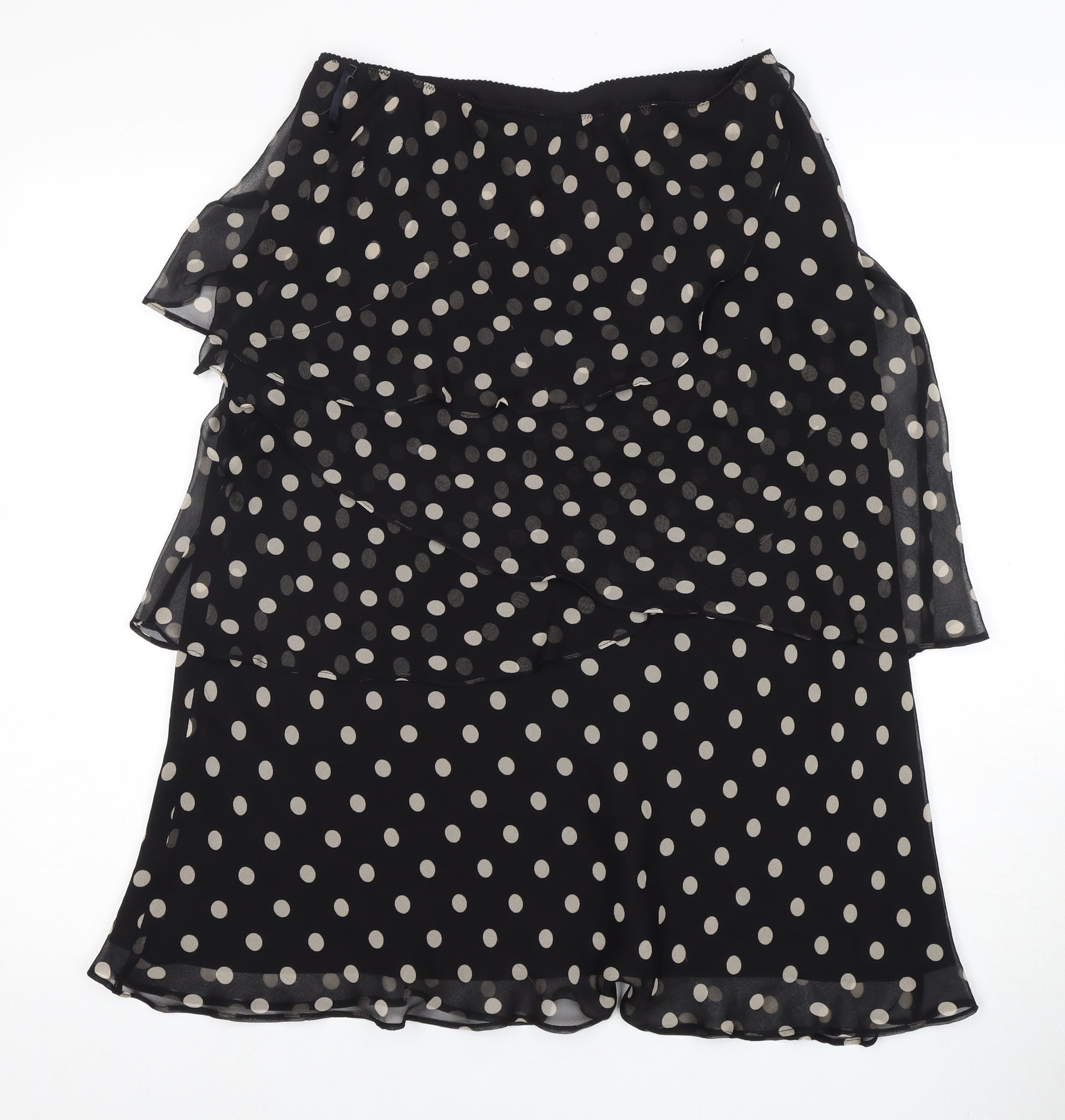 Elevate your wardrobe with this exquisite Hobbs women's skirt, crafted from luxurious 100% silk. Featuring a striking polka dot pattern, this stylish flare skirt is perfect for any occasion. The rich black colour adds a touch of sophistication, while the lined interior ensures comfort and high quality. Designed with a regular size 12 fit, this skirt offers an elegant and graceful silhouette. Ideal for those who appreciate timeless fashion with a modern twist. Whether dressing up for a special event or adding a chic flair to your everyday attire, this skirt is a must-have addition to any fashion-forward woman's collection. Please note, this skirt is in excellent condition, showing minimal signs of wear, but no original tags are present. Embrace the elegance and charm of Hobbs with this stunning silk skirt that effortlessly blends classic and contemporary styles, making it an essential piece for every season.