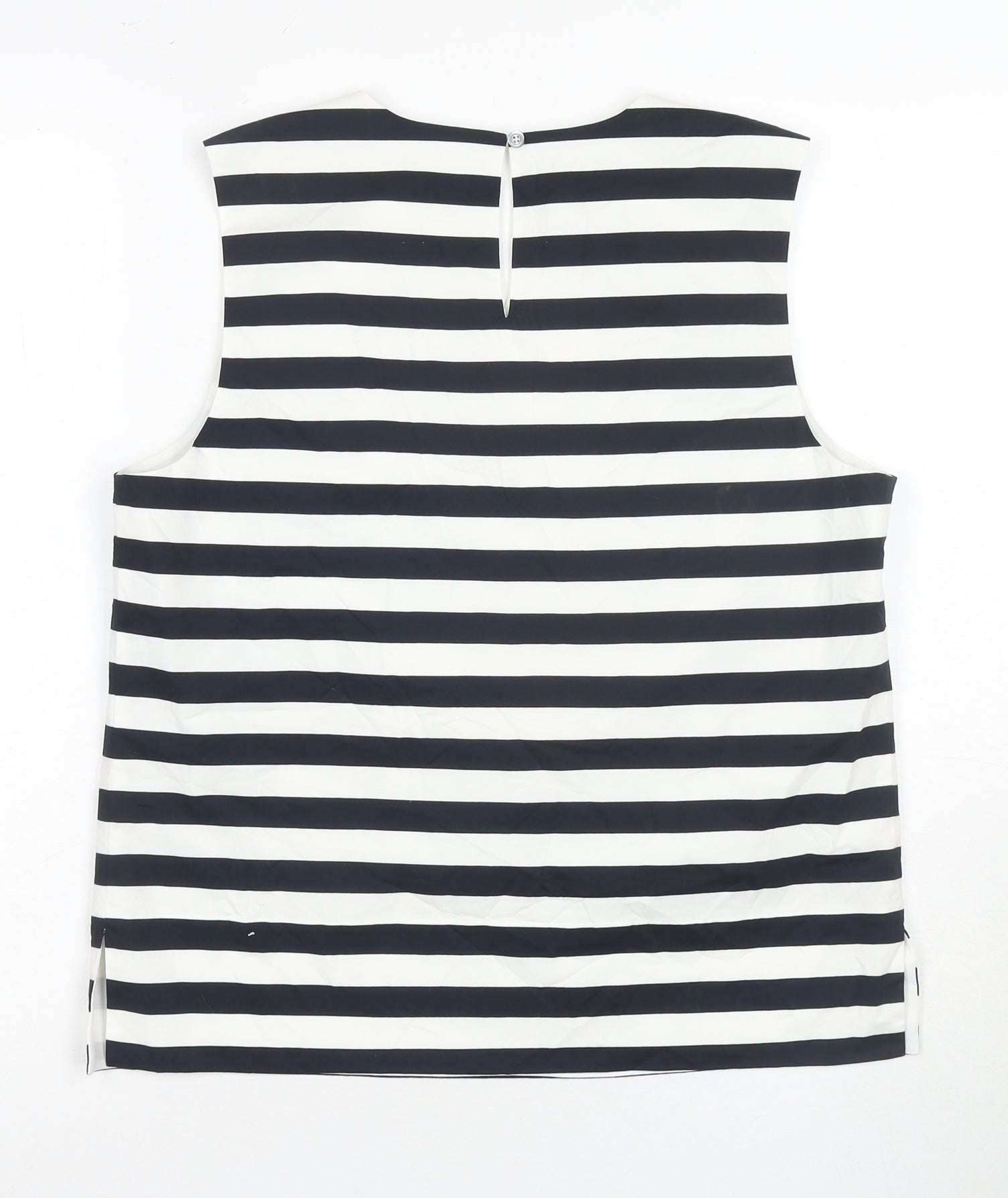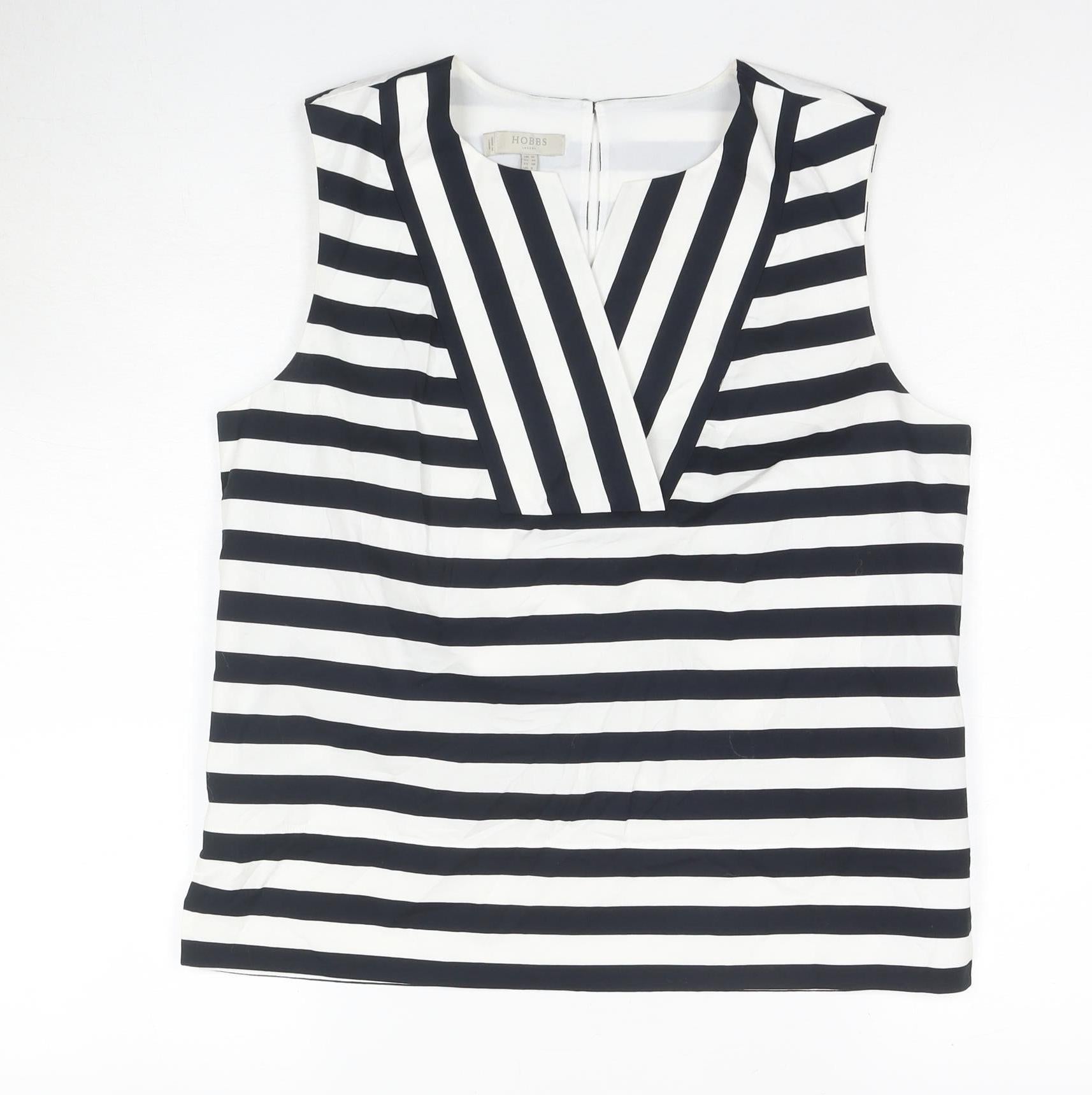 Elevate your wardrobe with this elegant black and white striped blouse from Hobbs. Crafted for sophistication and style, this sleeveless women's top in size 10 offers a classic fit perfect for a variety of occasions. The bold stripe pattern adds a contemporary twist to an otherwise timeless design, making it a versatile piece that can be dressed up or down. Whether you're heading to a business meeting or a casual outing, this blouse effortlessly combines comfort and flair. Its minimalist button closure at the back ensures ease of wear, while the premium quality material provides breathability for all-day comfort. This Hobbs creation is more than just a top; it's a statement piece that promises to enhance your ensemble with its chic aesthetic. A must-have addition for modern women seeking classic elegance with a modern twist. Ideal for those who appreciate quality craftsmanship and timeless style. Make this blouse a staple in your collection and enjoy endless styling possibilities.