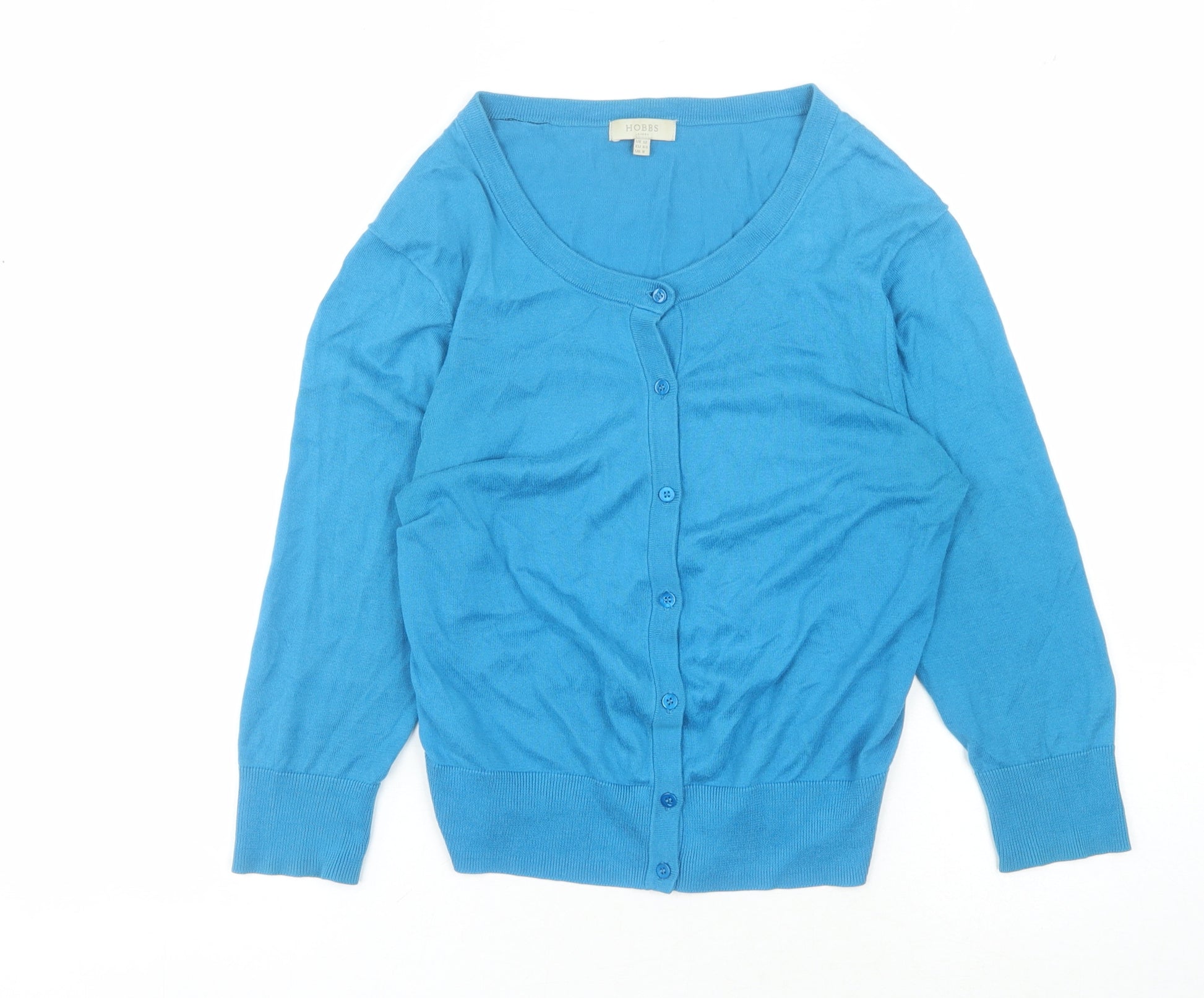 Upgrade your wardrobe with this lovely Hobbs women's cardigan. Perfect for layering, the stylish blue button-down cardigan is crafted from 100% cotton, ensuring comfort and breathability. Ideal for any outfit, its versatile design and long sleeves provide warmth without sacrificing style. Please note there is a small hole on the collar, reflected in the price.