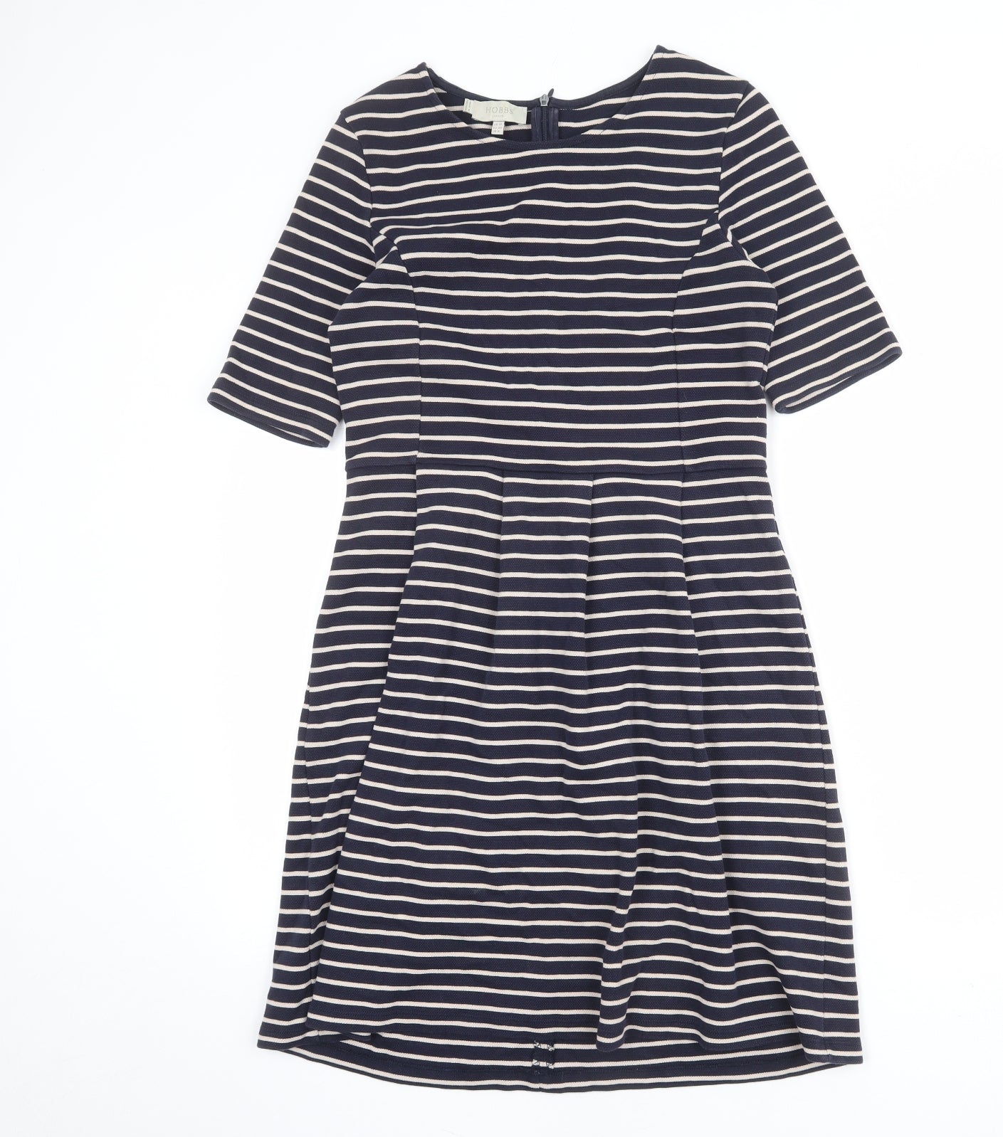 Womens Blue Striped Polyester Shift Size 10 Round Neck Zip