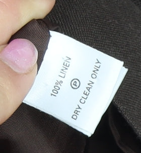 Explore effortless elegance with this Hobbs Women's Brown Linen Blazer in size 14. Crafted from 100% linen, this blazer offers a breathable, luxurious feel, perfect for any season. The jacket boasts a single-breasted, five-button front with a notch lapel style and regular length sleeves. Its sleek design features a regular fit that flatters the figure beautifully. The sophisticated brown hue makes it a versatile piece for various occasions, whether for casual outings or business engagements. With a lining made of acetate and viscose, it ensures comfort and a polished finish. The blazer is in excellent condition, showing no visible signs of wear, making it a chic addition to your wardrobe. Priced attractively, it's an ideal choice for fashion-forward women seeking timeless style. Get this elegant Hobbs blazer for only £25.75 and elevate your collection with this enduring classic.