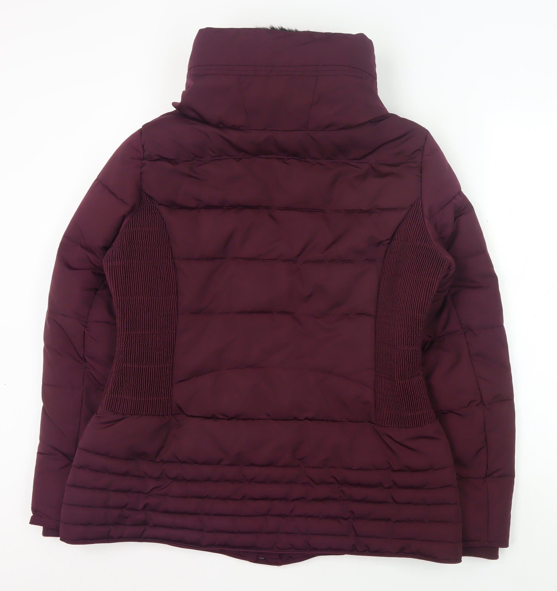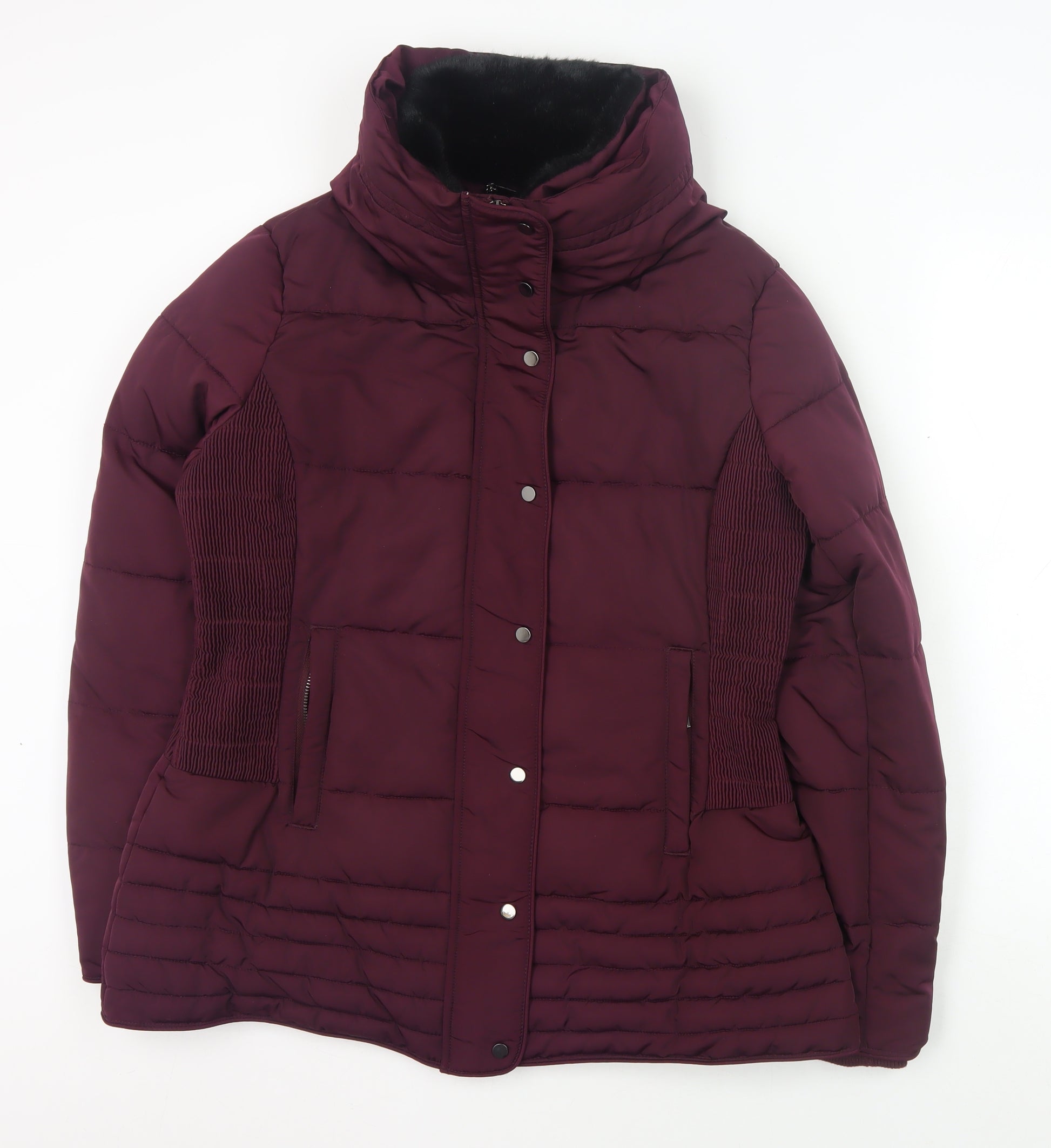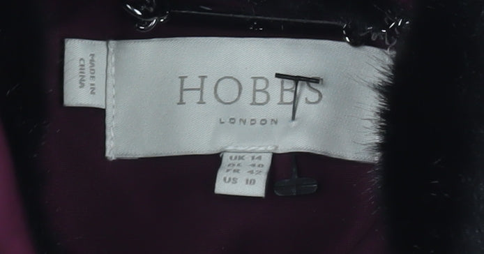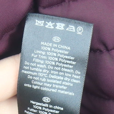 Stay warm and stylish this winter with the elegant Hobbs Women's Burgundy Puffer Jacket. Crafted from durable polyester, this mid-length jacket is perfect for casual occasions, providing both comfort and sophistication. The jacket's full zip closure and additional button snaps ensure warmth and ease of wear. It features a cosy quilted design with a luxurious fur trim accent, adding a touch of elegance to its practical style. Designed for the modern woman, the jacket comes in a rich burgundy hue, making it a tasteful addition to any wardrobe. With a regular fit and long sleeves, it is tailored to provide a flattering silhouette while offering ample insulation for the colder months. The lining is made entirely of polyester, enhancing its durability and comfort. Ideal for winter wear, this jacket is versatile enough for various outings, whether you're headed to work or engaging in weekend activities. Its practical features include lined pockets, ensuring you have storage for your essentials. With attention to detail and a commitment to quality, Hobbs offers a piece that not only meets your functional needs but also embodies timeless style. Dry clean only to maintain its excellent condition. Make this your go-to jacket this season and embrace the cold with confidence.