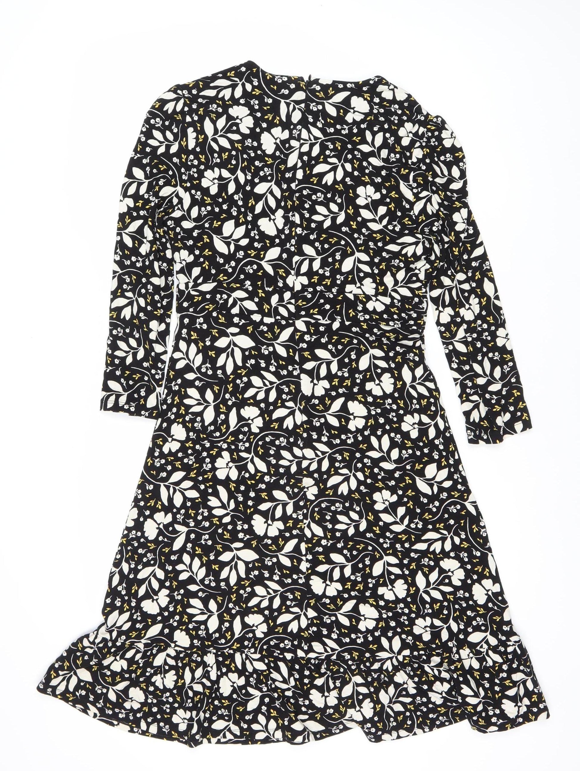 Women's Floral Black Midi Dress, Size 12, Spring Casual