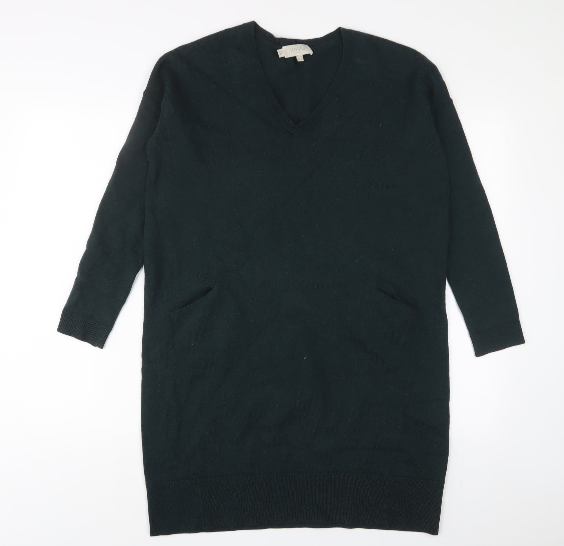 Womens Green Wool Jumper Dress Size 10 V-Neck Pullover