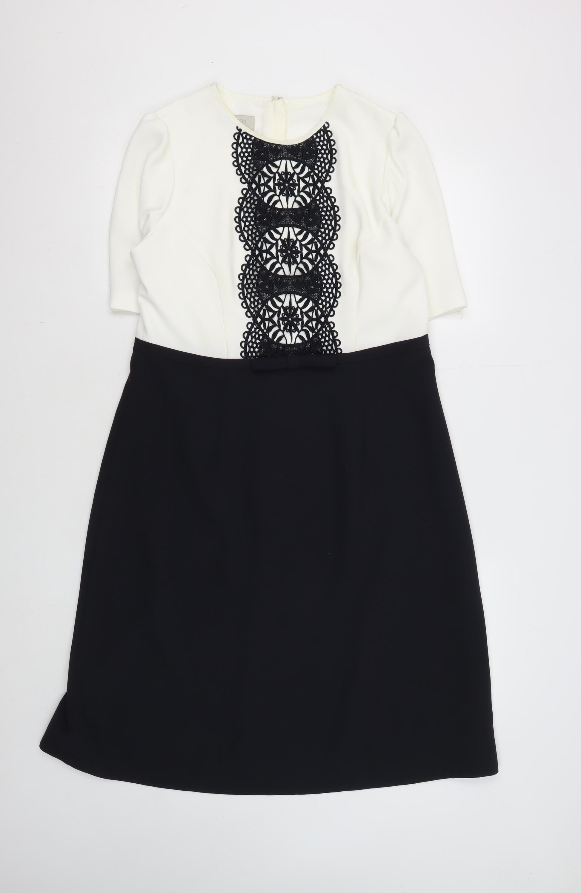 Women's Ivory & Black Sheath Dress, Size 14, Classic Elegance