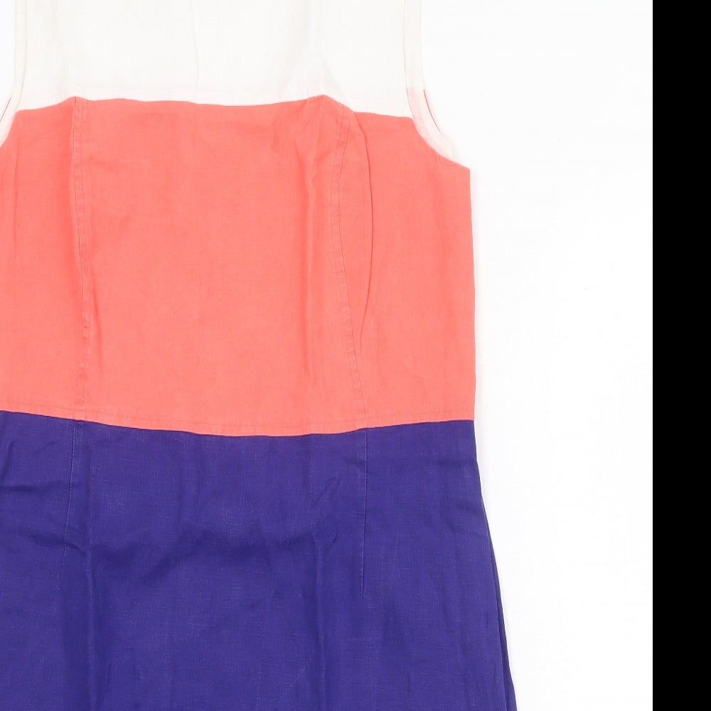 Womens Multicoloured Colourblock Linen Shift Size 14 Boat Neck Zip
